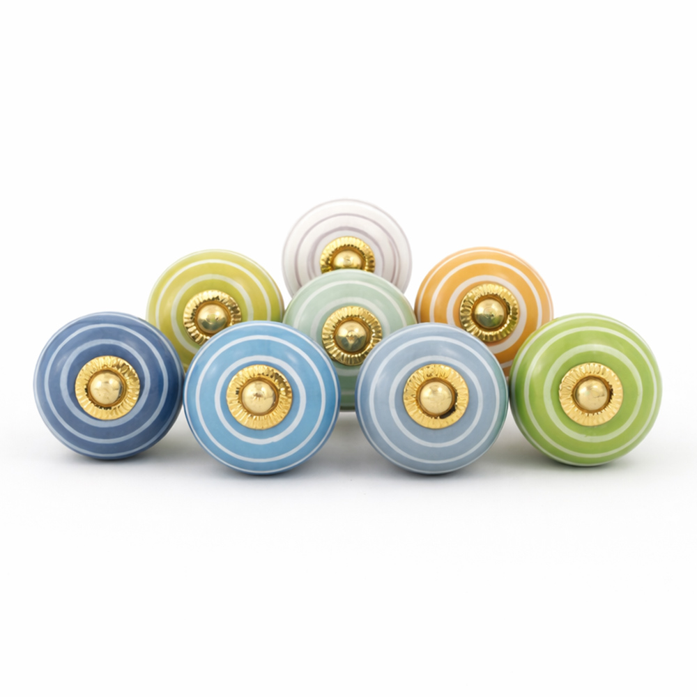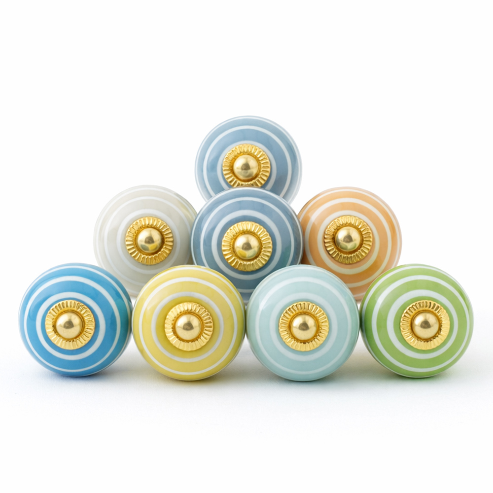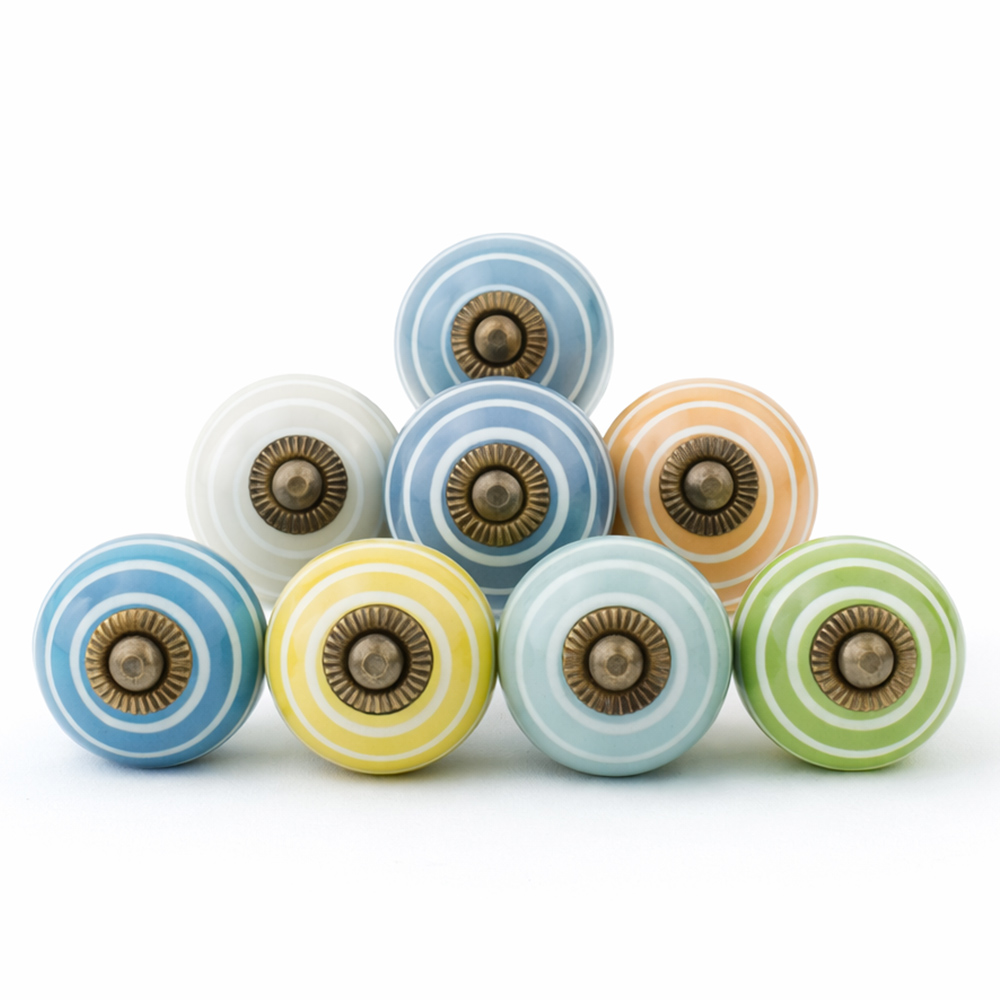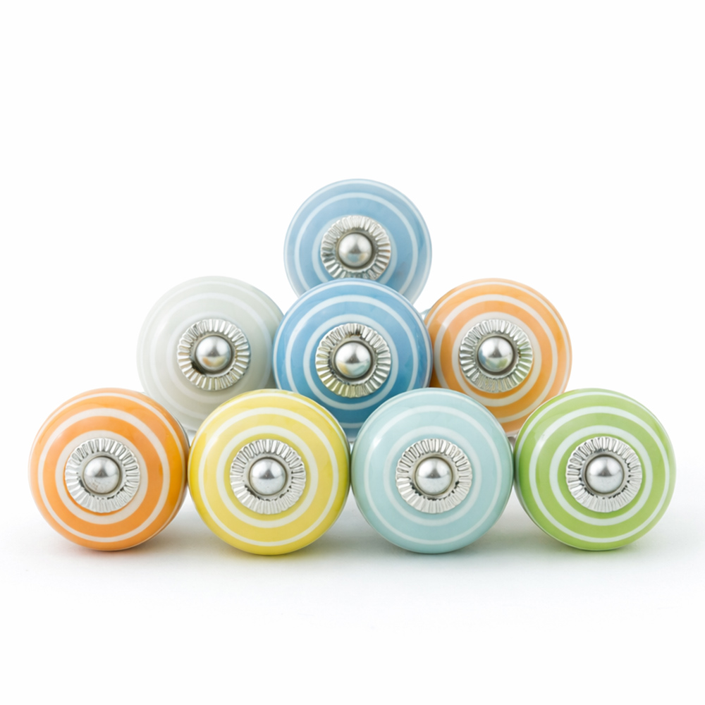Handmade ceramic striped knobs adds charm to your furniture. Ideal for drawers, dressers, cabinets, wardrobes, cupboards, doors, and almirahs.