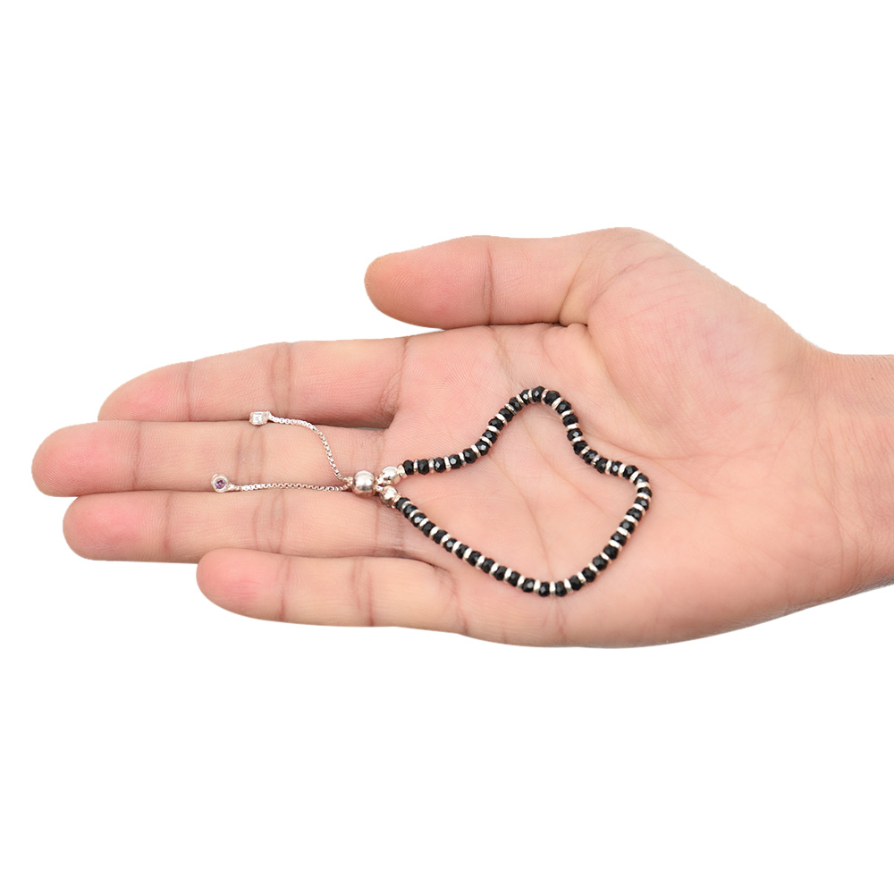 This Silver Black Beads Nazariya Bracelet is an ideal baby gift. Birthday celebrations, carnivals, and casual gifting are all appropriate occasions. Black beads on the Silver Bracelet ward off evil. The bracelet's size is adaptable.