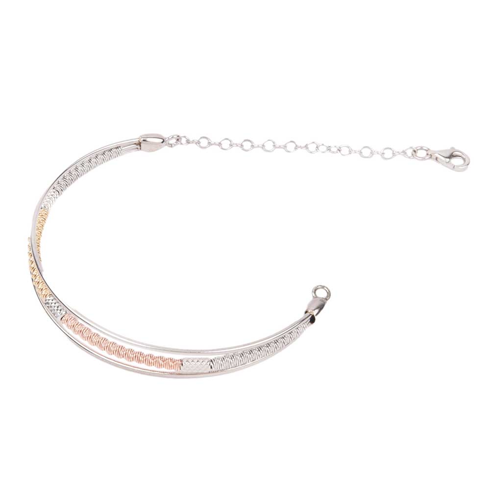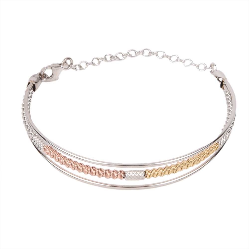 92.7 Sterling Silver And Gold Plated Braid adjustable Bracelet with silver pipes on either side. Suitable For workplace, Formal, Casual & Party Wear and joyous occasions. Team Up With robes, Saris, Indian Outfit Or Cocktail Evening Wear. Ideal friendly relationship Day, St Valentine's Day or present To Friend, Girlfriend, Daughter, Wife, Sister, Boss Or somebody Special.