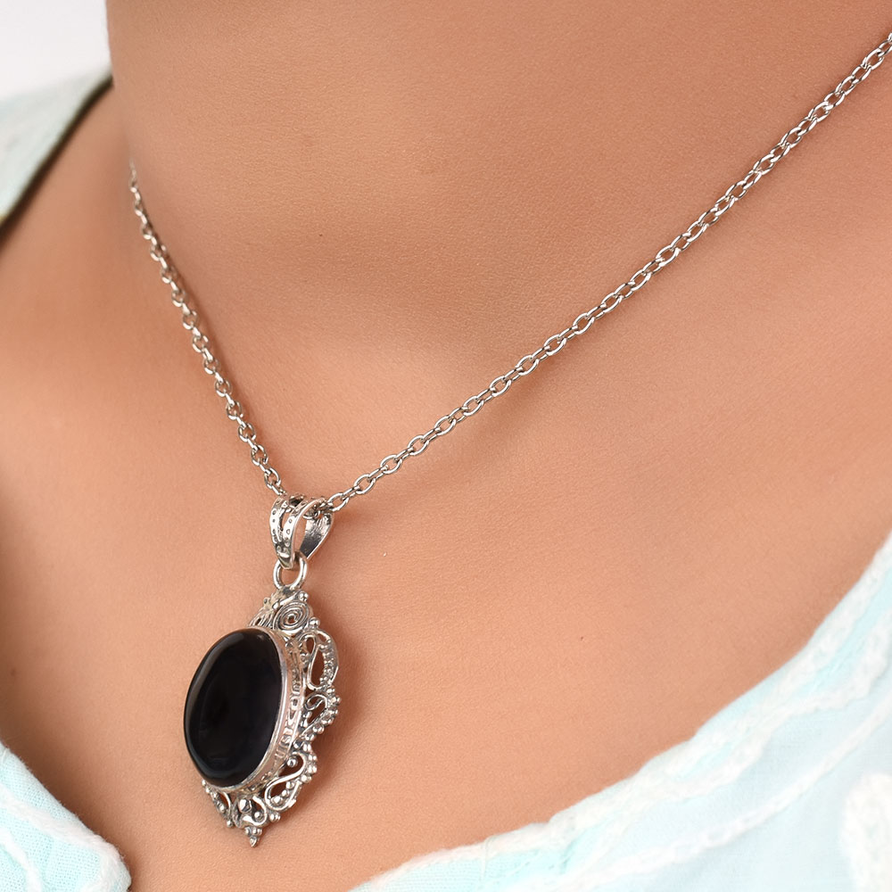 Dazzle everyone with our silver pendant chain for women made in 925 Sterling Silver and Semi-Precious Stone Black Onyx. Suitable for Any Season these pure silver pendant would make a great birthday gift, anniversary gift, mother's day gift, valentine's day gift, Christmas gift, wedding gift.