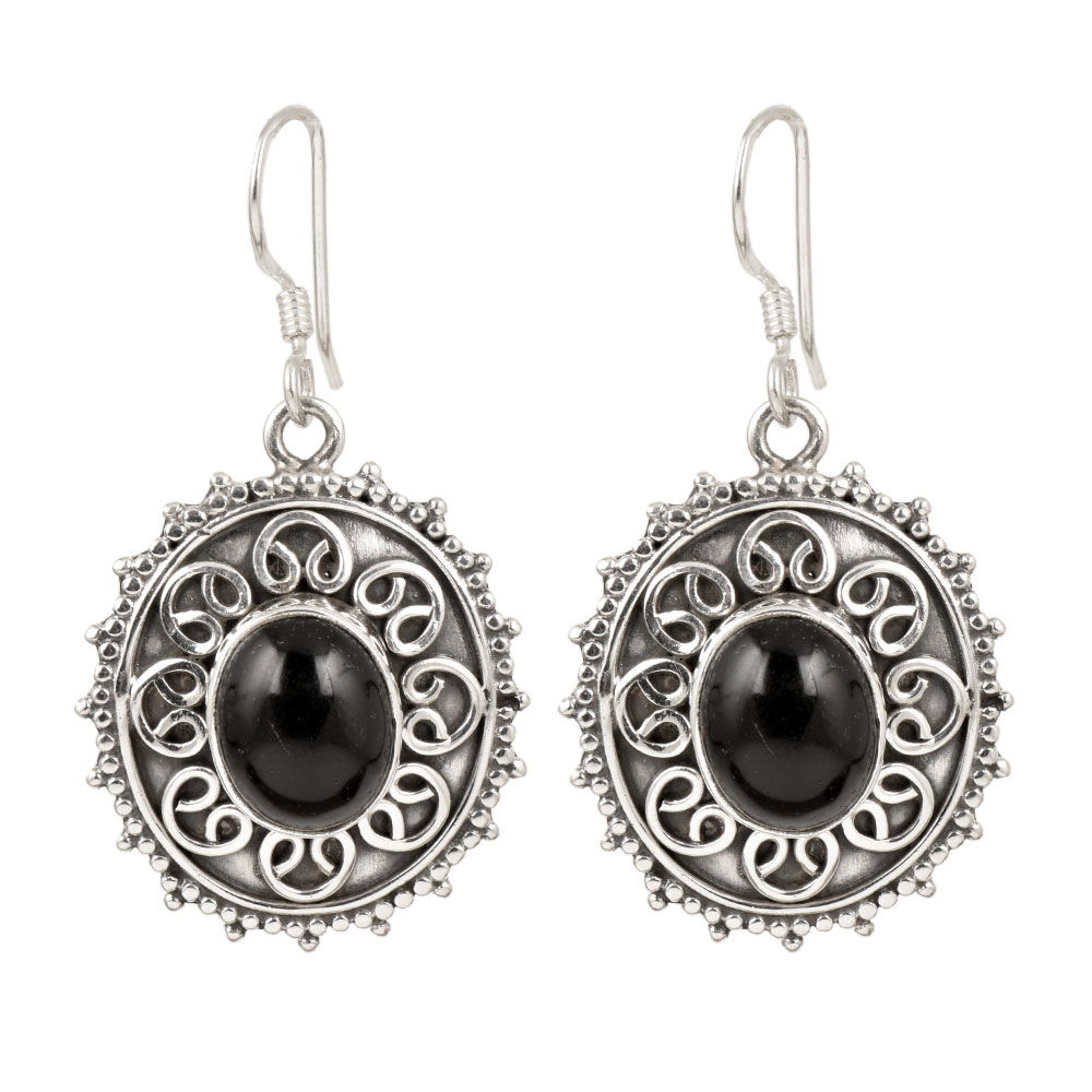 Handmade 92.5 Sterling Silver Fancy and everyday wear with single round black onyx stones for girls and women the eternal classical design these vintage earrings will complement any occasion ethnic wear/ daily / college / party wear.