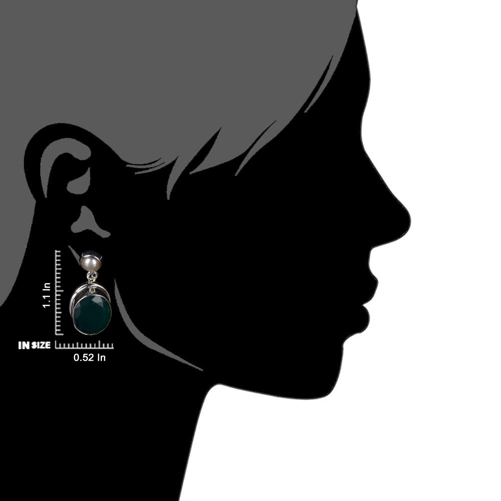 Jazz up your look with these hand made Green Onyx and Pearl earrings. Crafted in an intricate design frame of sterling silver, the pair boasts captivating charm. These earrings will bring a feminine appeal to your personality with a taste of an exquisite appeal.