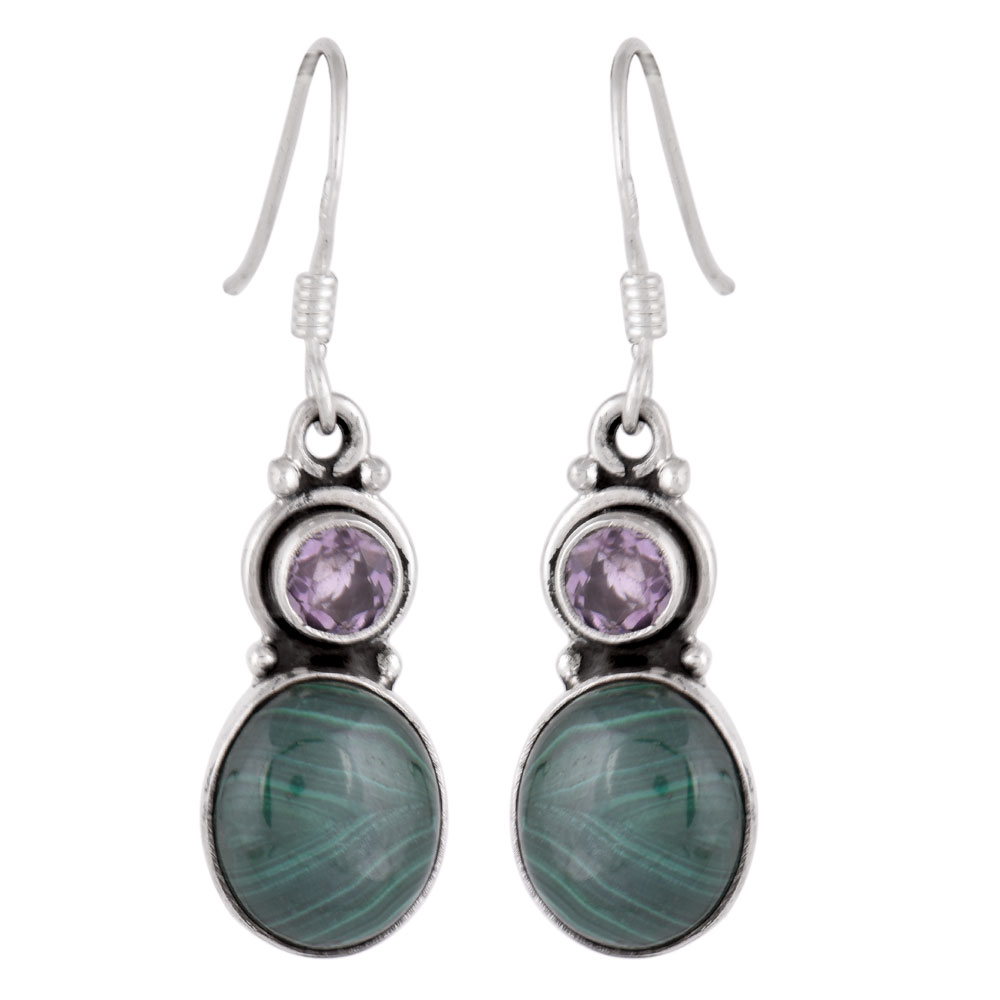 Handmade 92.5 Sterling Silver Tanzanite and Melachite Dangle Fancy Party Wear Drop and Dangler Earrings for Girls and Women the eternal classical design these vintage earrings will complement any occasion ethnic wear/ daily / college / party wear.