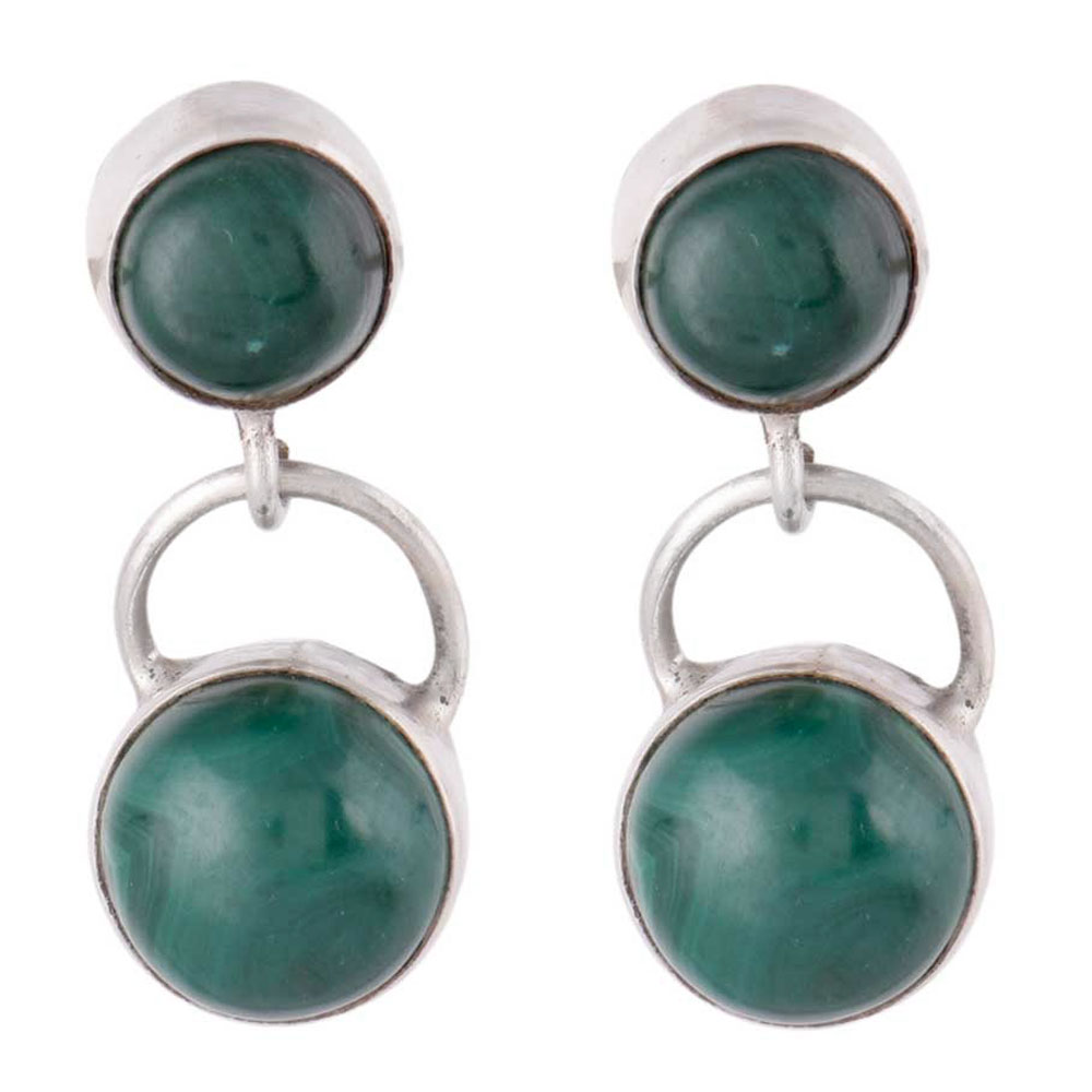 These earrings are handmade with twin Green Malachite on 92.5 sterling silver with a hook and can be worn on birthdays, marriages, engagements or any special occasions to give it an Indian or traditional look.