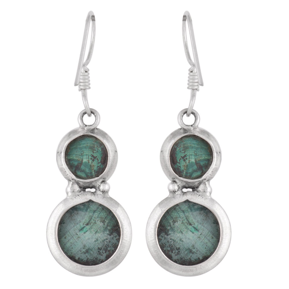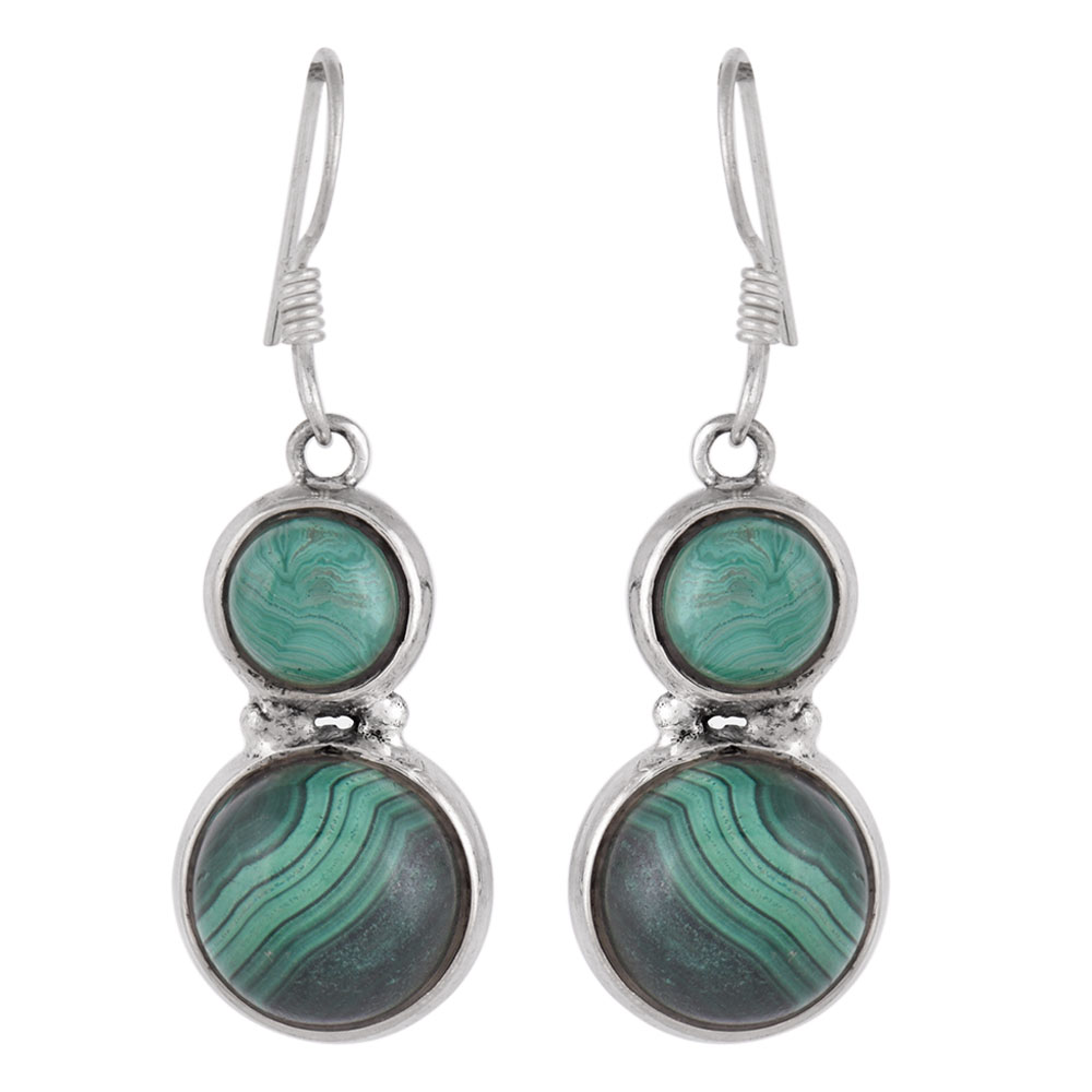 Handmade 92.5 Sterling Silver Round Melachite Dangle Fancy Party Wear Drop and Dangler Earrings for Girls and Women the eternal classical design these vintage earrings will complement any occasion ethnic wear/ daily / college / party wear.