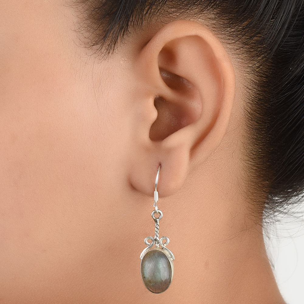 Fashionable and trendy 92.5 Sterling Silver Earrings Studded With semi precious agate stone with a rope design in silver around the stone . This hanging earrings are suitable for every day office and college wear by women and girls.