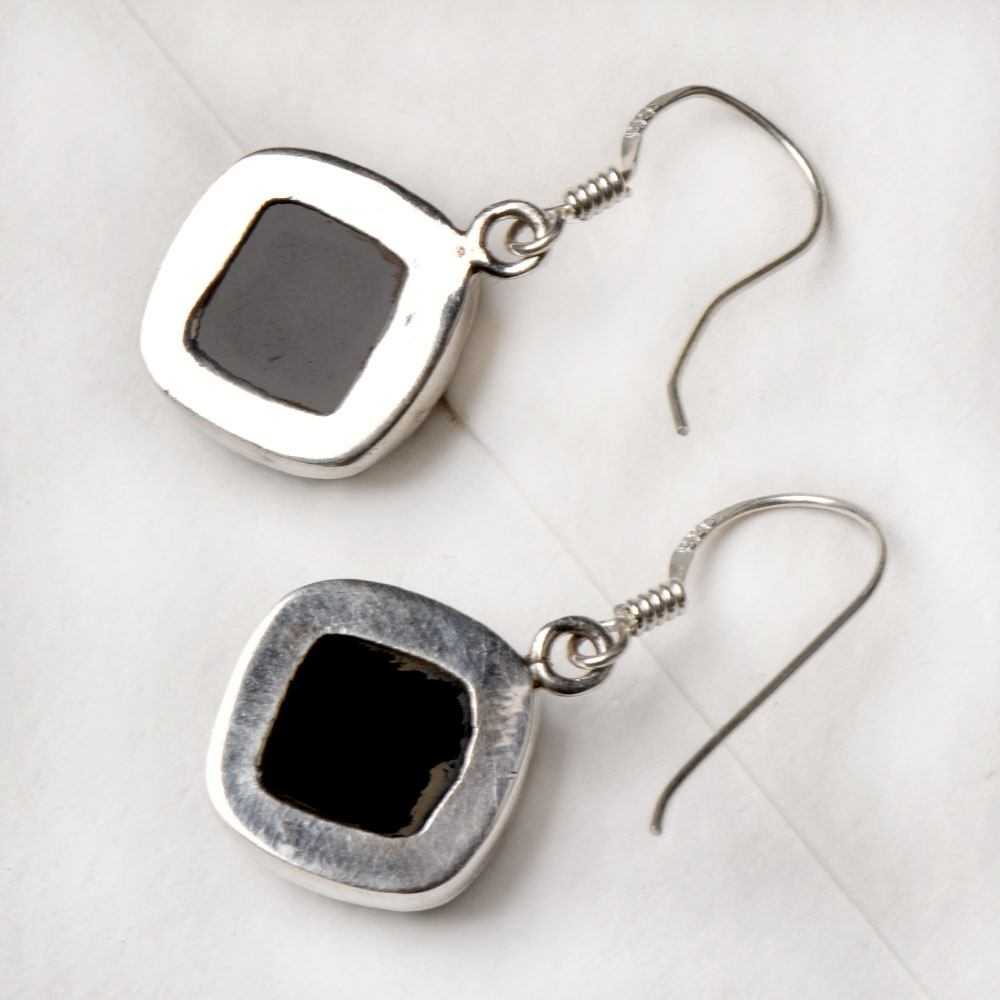 Simple and elegant square design black onyx cabochon bezel set silver earring can be easily worn everyday to college, office or to the market. It looks perfect with a black gown or black designer wear . Wear to a party, engagement , Wedding or any other social gathering .