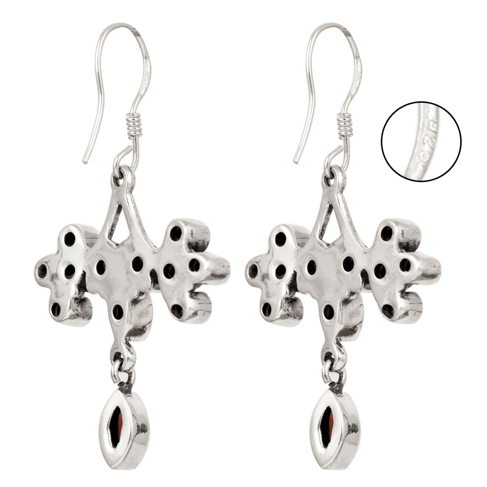 These handmade 92.5 Sterling Silver Earring looks extremely classy and elegant and is ideal for traditional as well as modern attire with red garnet stones in hanging leaves design. A perfect gift for your sister, mother and girlfriend. On occasions like weddings, Valentine day and birthdays etc.