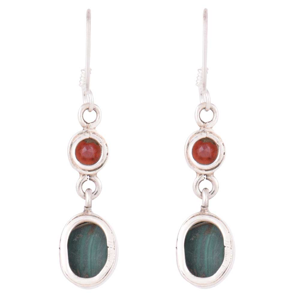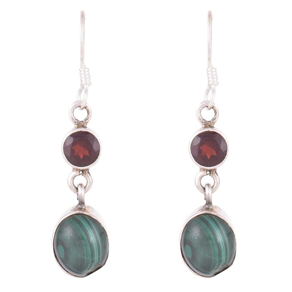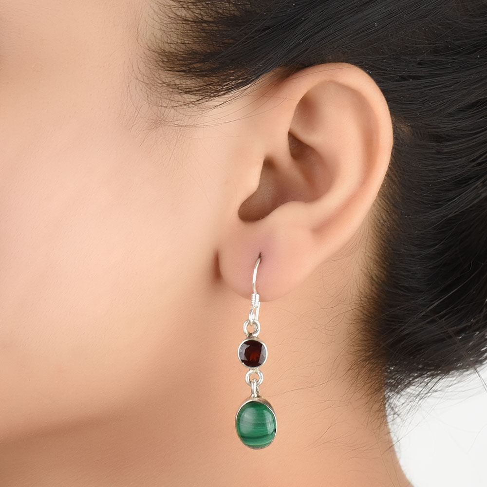 Handmade 92.5 Sterling Silver round Garnet and Melachite Dangle Fancy Party Wear Drop and Dangler Earrings for Girls and Women the eternal classical design these vintage earrings will complement any occasion ethnic wear/ daily / college / party wear.