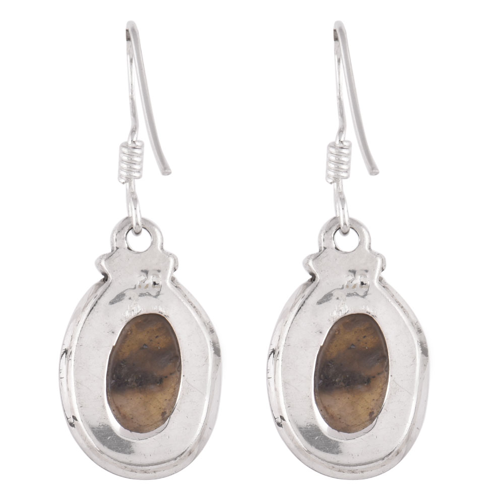 Simple and classy 92.5 Sterling Silver Earrings with a long grayish brown Jasper Semi precious stone in bezel setting attached s to a hook easy to wear and remove and light weight for everyday wear. Wear it to a birthday party an ideal valentine day gift.