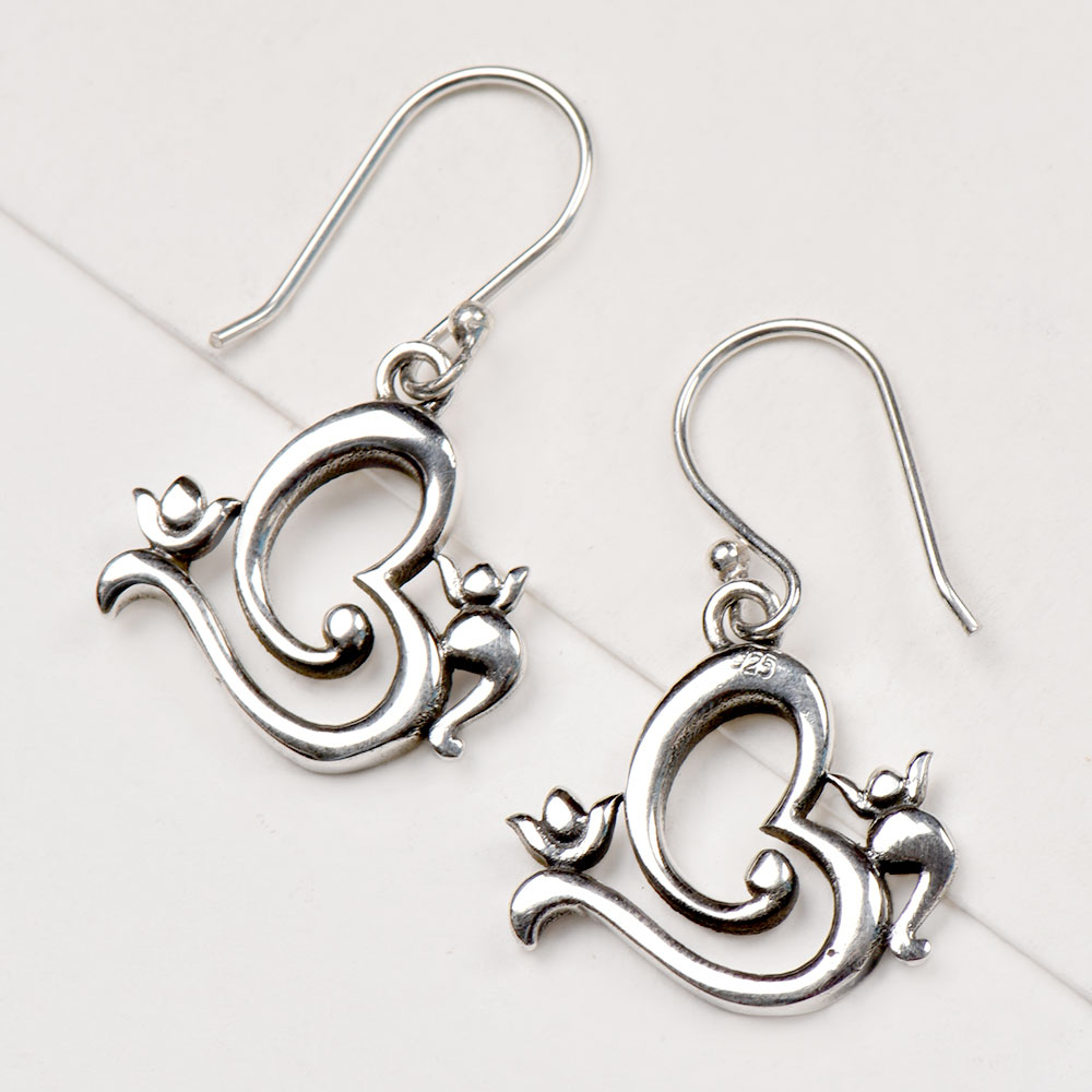 The earrings are designed with the sacred Om symbol and the revered Lord Ganesh, a deity known for removing obstacles and bringing prosperity. The drop dangle design adds movement and elegance, while the sterling silver offers a polished, timeless look that enhances their spiritual symbolism. These earrings are perfect for those who want to combine their love for tradition with their sense of style.