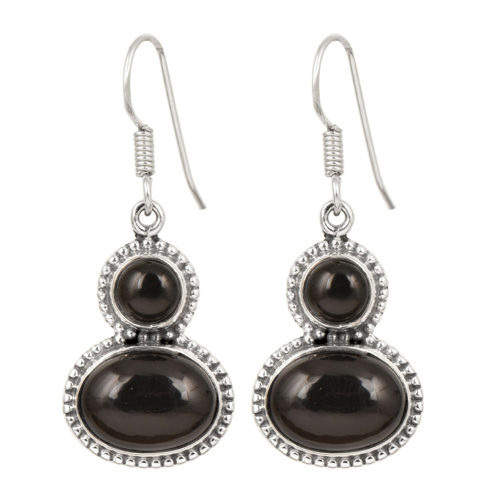 Handmade 92.5 Sterling Silver Fancy drop dangle earrings for everyday wear with a round and other oval shape black onyx stones for girls and women the eternal classical design these vintage earrings will complement any occasion ethnic wear/ daily / college / party wear.