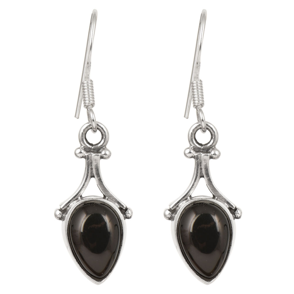 Handmade Beautiful hangings earrings are made of 925 sterling silver in a sculpture design with black teardrop shape Onyx stones are fantastic earrings to wear and enjoy forever.