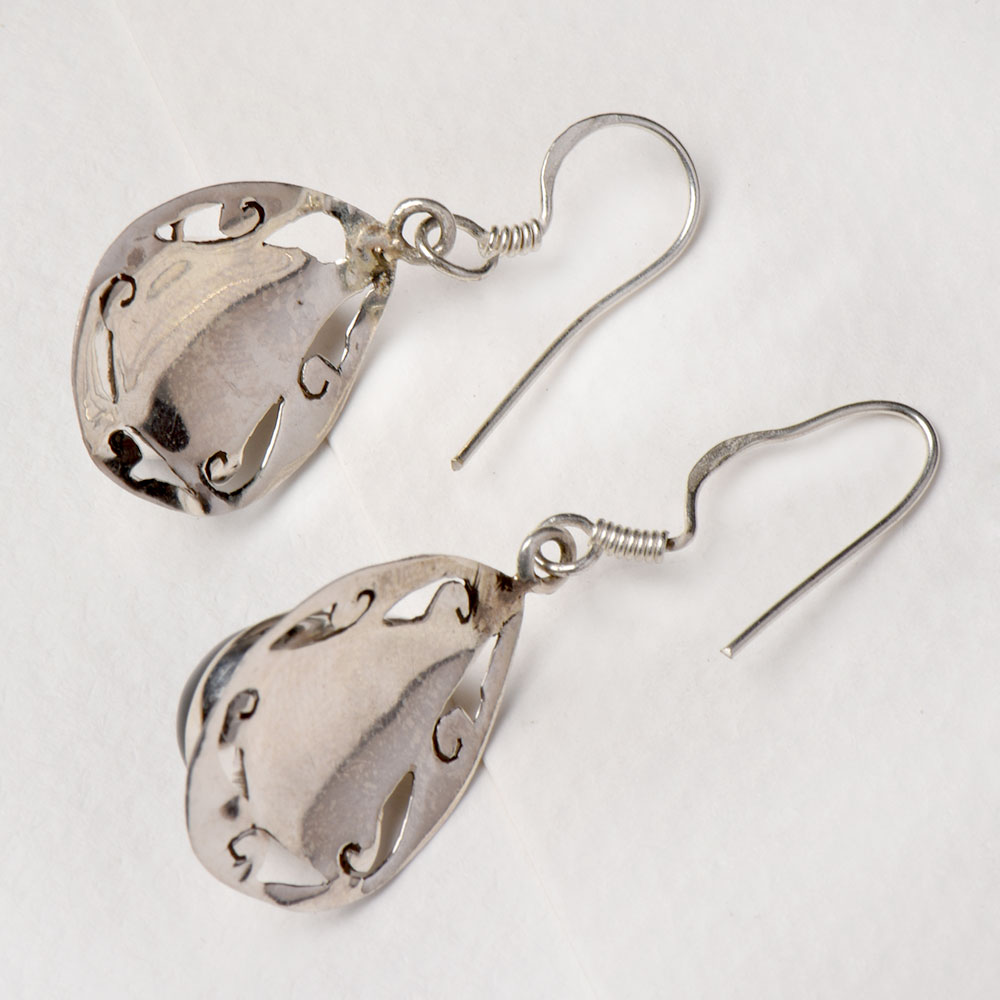 92.5 Sterling Silver Earrings Oval Black Onyx Cabochon studded with a frame engraved with tribal designs .This boho chic fashion earrings compliment traditional as well as modern wear. Step out in style and flaunt these lovely black stone hangings with a lovely black designer dress for that special occasion.