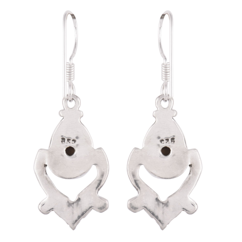 Subtle Style Earrings with Pear Shaped Grayish Jasper Stone Studded 92..5 Sterling Silver Earrings With A ornate design below the stone. It has a hook that makes it comfortable to wear or remove the earring. Fashion Daily Wear earring.