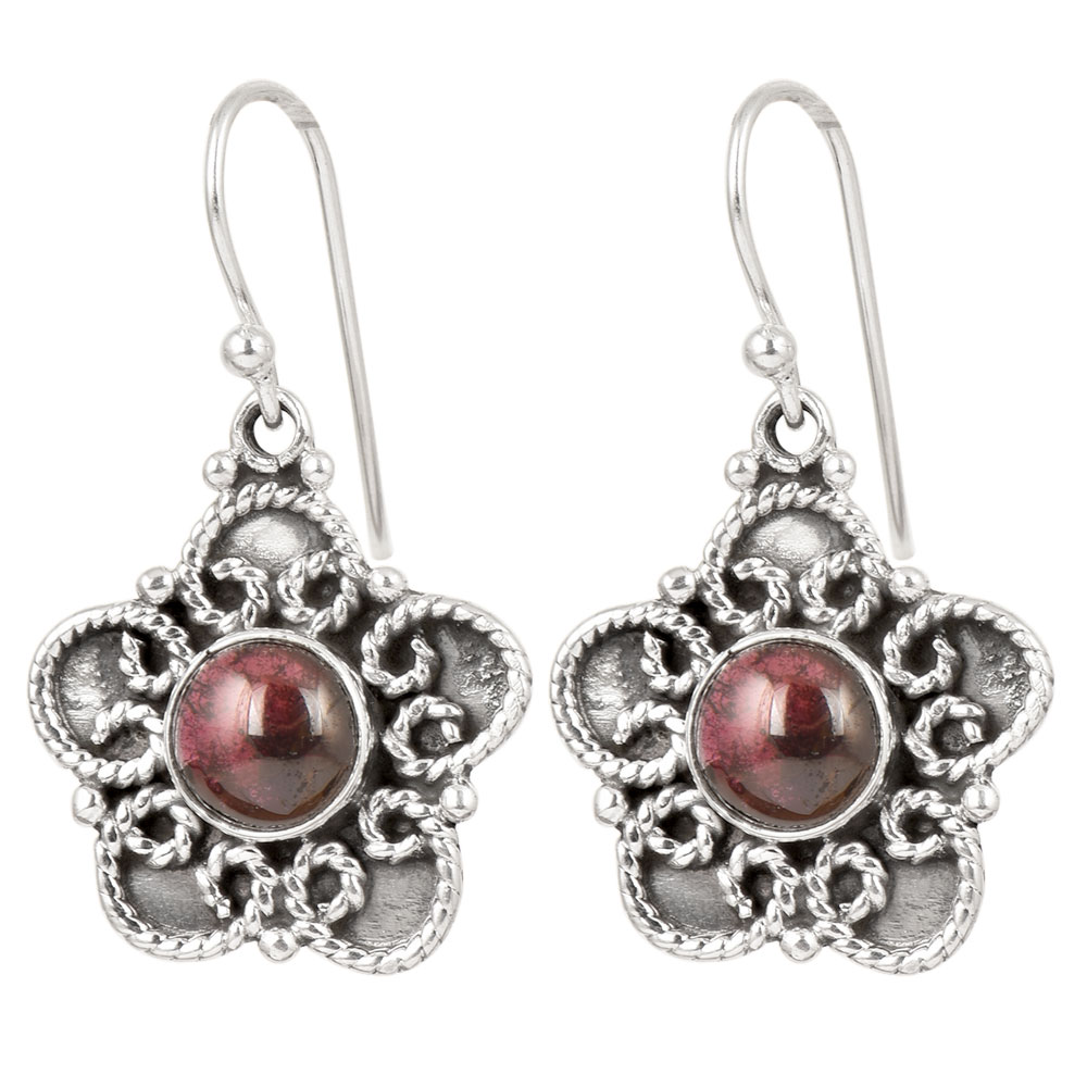 Designer earrings with the adornment of Purpe Jade in silver flower design hanging from the center crafted in pure 92.5 Sterling Silver. Perfect outfit's danglers earring for any party and occasion day to night and Perfectly suited for Wedding, Ethnic, Festive Party wear