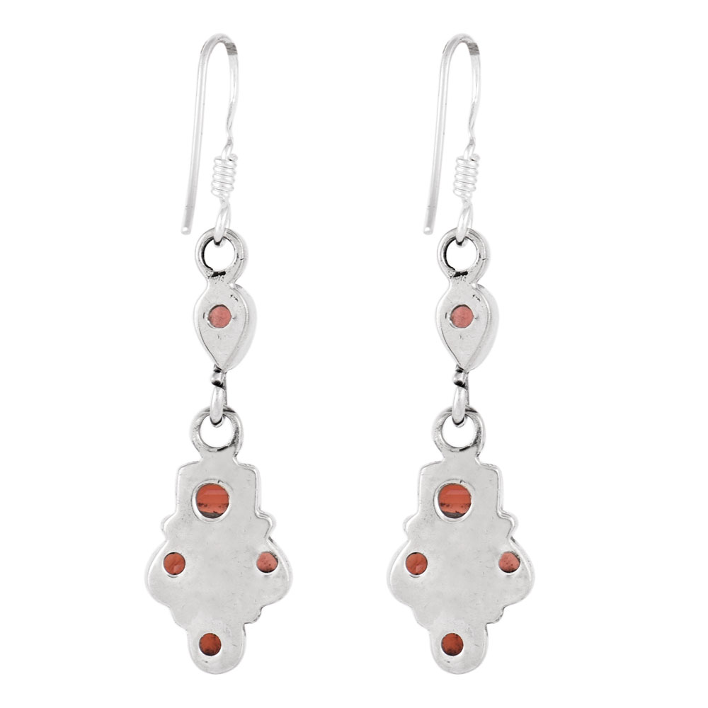 Silver and gleaming Red Garnet stones is a subtle yet striking combination for all occasions. The blend of silver with Garnet is used to accentuate the delicate design of the earrings. These beautiful earrings will complement Indian and western look alike.