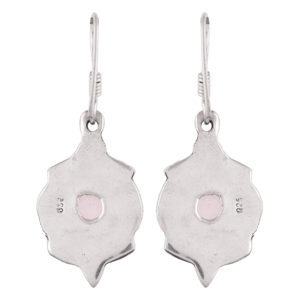 A unique 92.5 Sterling silver Earrings with a triangular Grey Moonstone In bezel setting with a branch with twisted vein design. It has a hook attached to the stone .A very subtle jewelry for a subtle attire to look elegant and classy.
