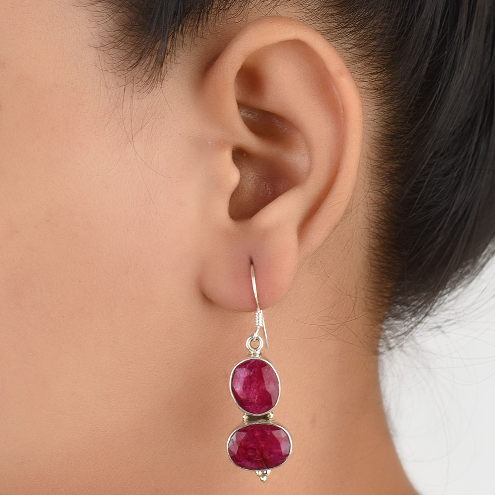 Handmade 92.5 Sterling Silver twin oval pink Tourmaline Designer Dangle Fancy Party Wear Drop and Dangler Earrings for Girls and Women the eternal classical design these vintage earrings will complement any occasion ethnic wear/ daily / college / party wear.