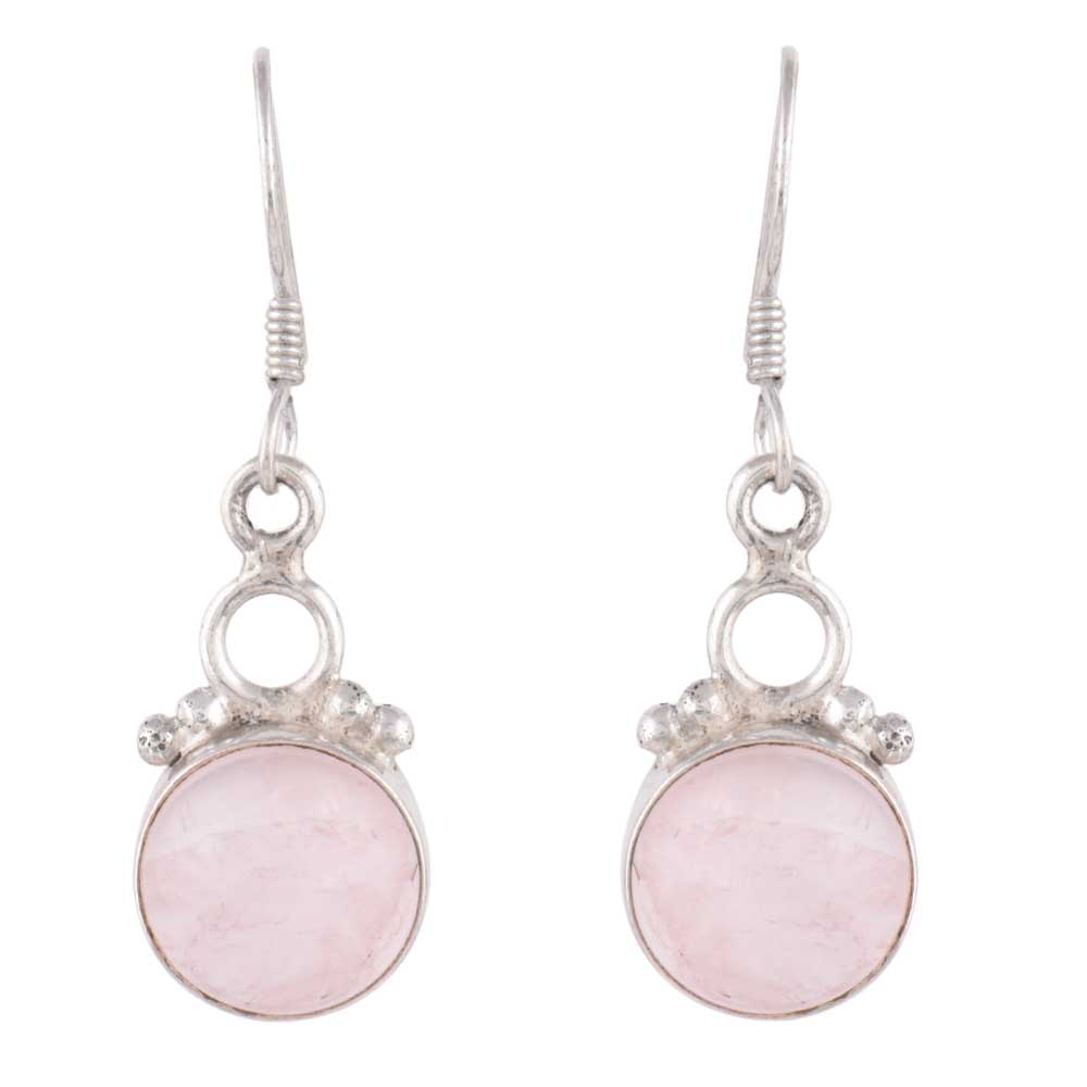 Handmade 92.5 Sterling Silver engraved Rose Quartz in round Dangle Fancy Party Wear Drop and Dangler Earrings for Girls and Women the eternal classical design these vintage earrings will complement any occasion ethnic wear/ daily / college / party wear.