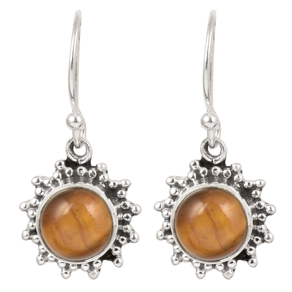 Liven up your bold hues with round Tiger Eye and 925 Sterling silver drop earrings to make it an everyday style statement. Eternal classical design earrings will complement any occasion ethnic wear/ daily / college / party wear.