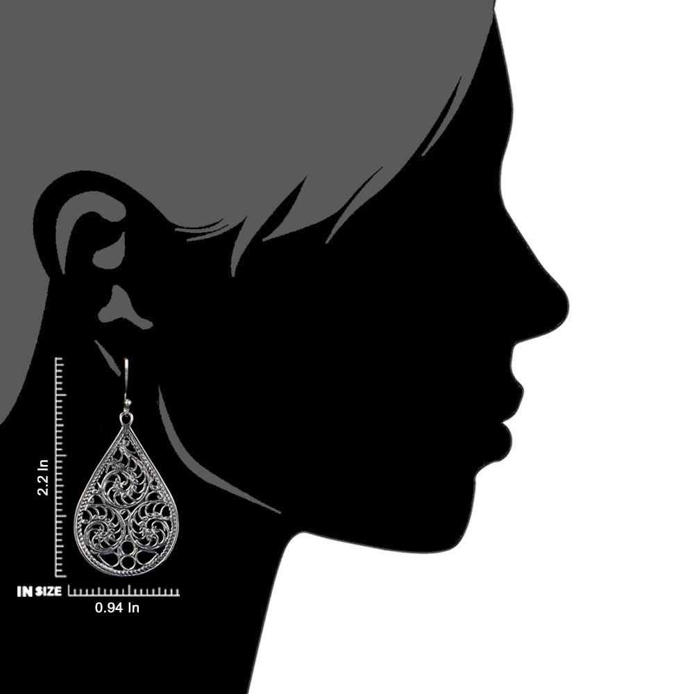 Stylish and fashionable handmade sterling silver drop earrings are the ideal gifts for birthdays, wedding and anniversary gift. These round Floral sterling silver dangle earrings are such fun to wear. Their darkened patina and highly polished pattern gives it a boho chic appeal.