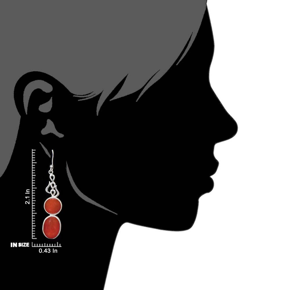 Handmade 92.5 Sterling Silver Fancy drop dangle earrings and everyday wear Red jade fashion hangings for Girls and Women the eternal classical design these vintage earrings will complement any occasion ethnic wear/ daily / college / party wear.