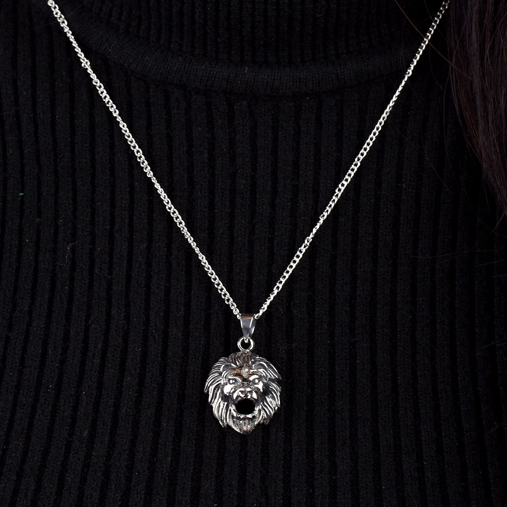 This Interesting Funky Majestic Lion Face 92.5 Sterling Silver pendant necklace for men and women. Ideal to be worn on casual and party wear. Wedding gift, anniversary gift, birthday gift, Diwali, Christmas or new year party gift.