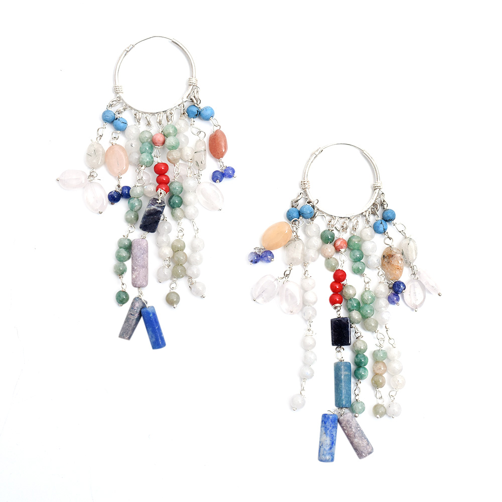 Add a stunning pair of tassel earrings with multicolored stones set in 92.5 sterling silver to your jewelry collection to complete the look. Ideal gift for a loved one's Valentine's Day, birthday, anniversary, engagement, or wedding. Perfect gift for a friend, sister, mother, wife, or girl is also giving the perfect gift.