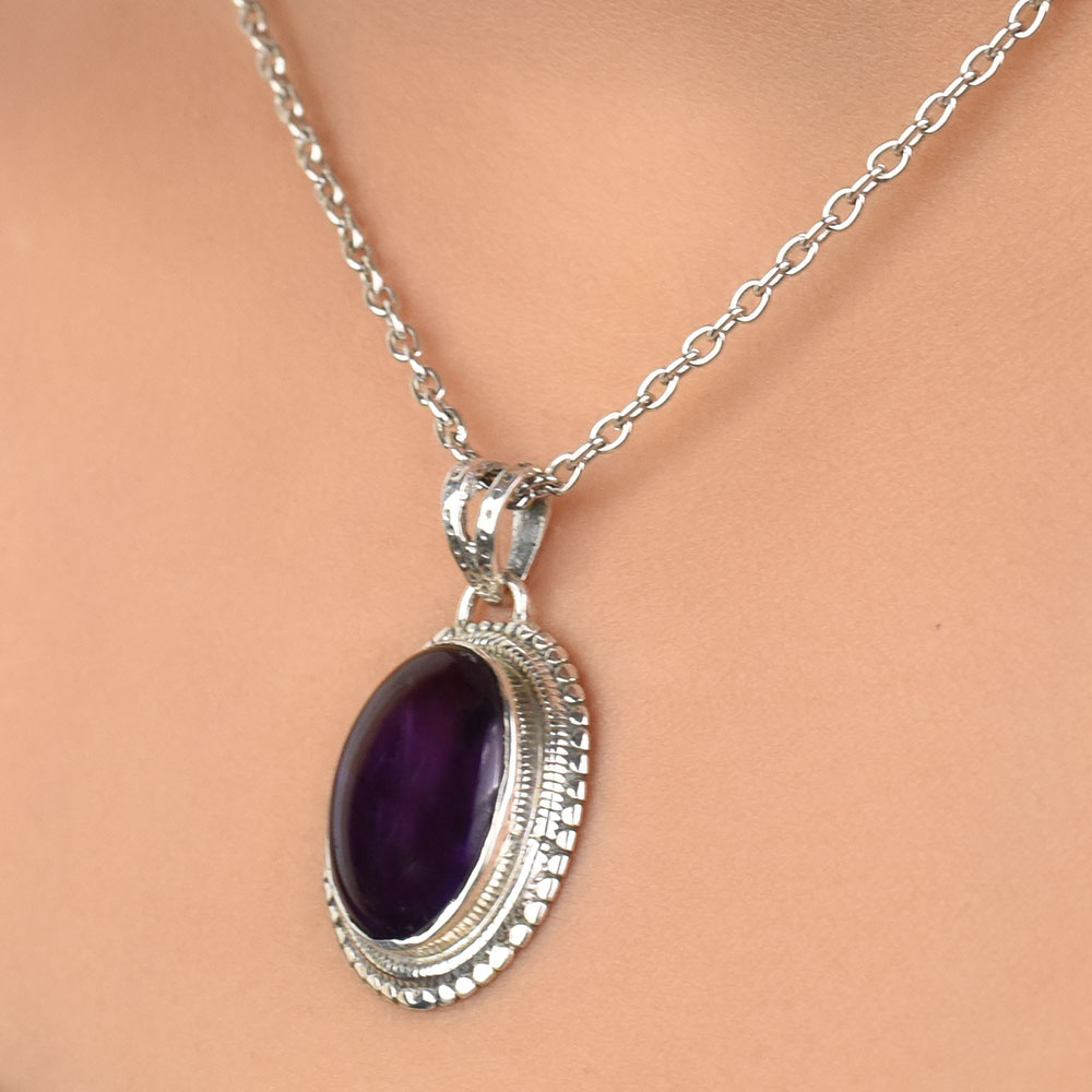 Lovely Amethyst Semi precious stone in Big Oval Shape In Sterling Silver. This pendant jewelry is Best For Gifting. Ideal Gift For All Occasions Such As Birthday, Anniversary, Wedding, Engagement. Gift It To That Someone Special Whom You Love And They Will Cherish It Forever.