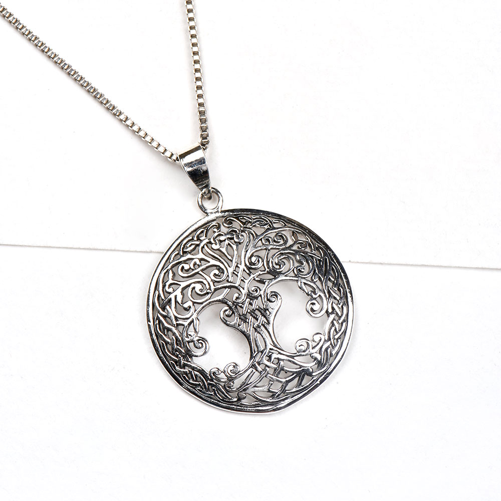 Round Engraved 92.5 Sterling Silver Pendant with tree of life with branches overhead and roots of tree underground Gift it to your sister,friend or mother during wedding, anniversaries, engagements, birthdays , Diwali , Christmas or other auspicious functions.