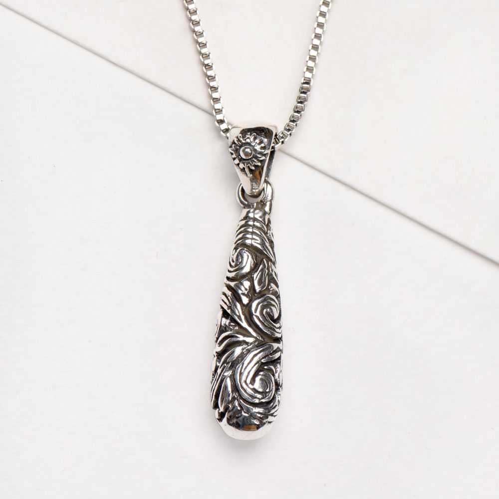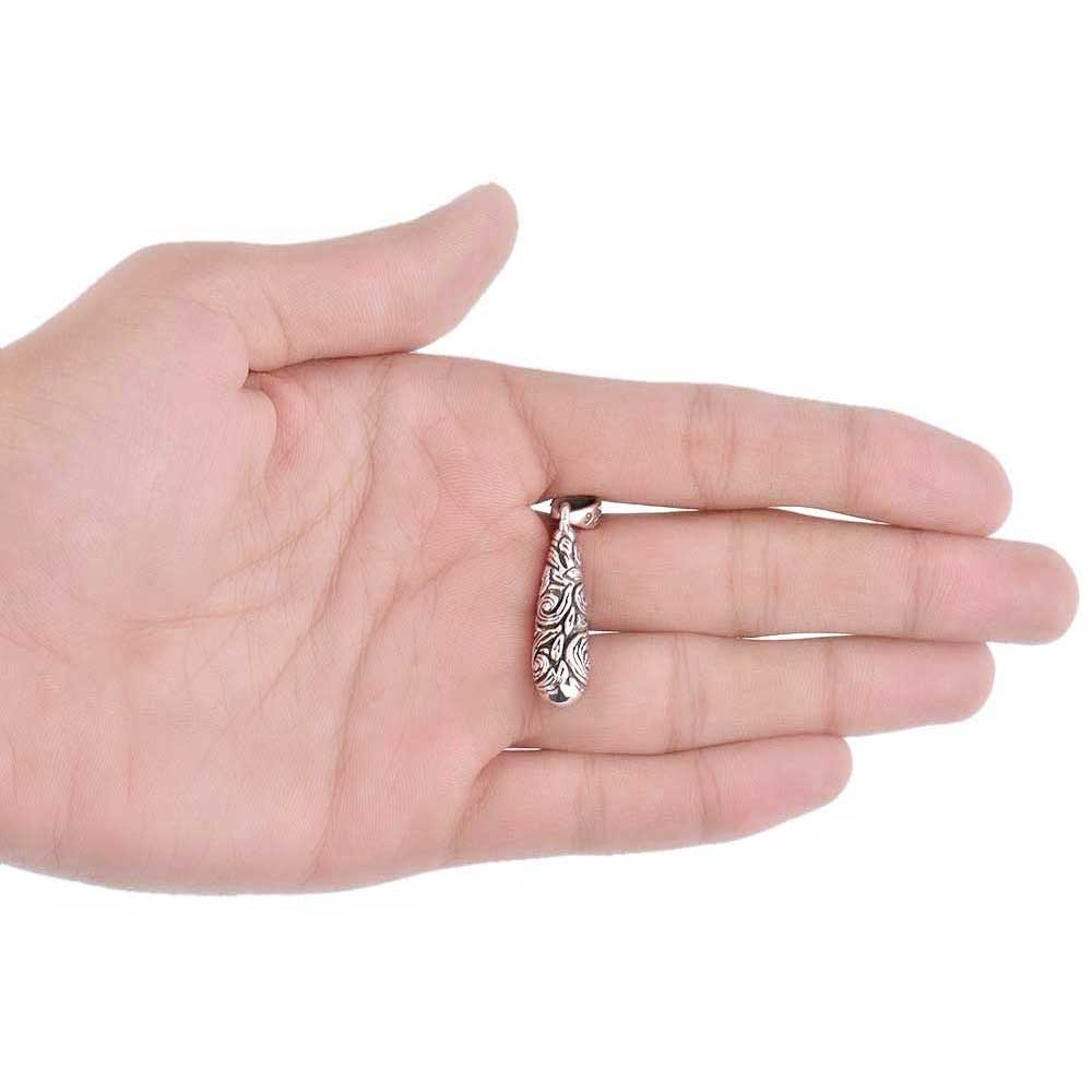 Handcrafted silver (92.5 sterling silver) pendant in a beautifully floral carved design pattern that is handcrafted by Indian artisans and goes well with all traditional attire. It’s trendy fusion jewellery that can be worn on wedding, festival, party, and on any occasion.