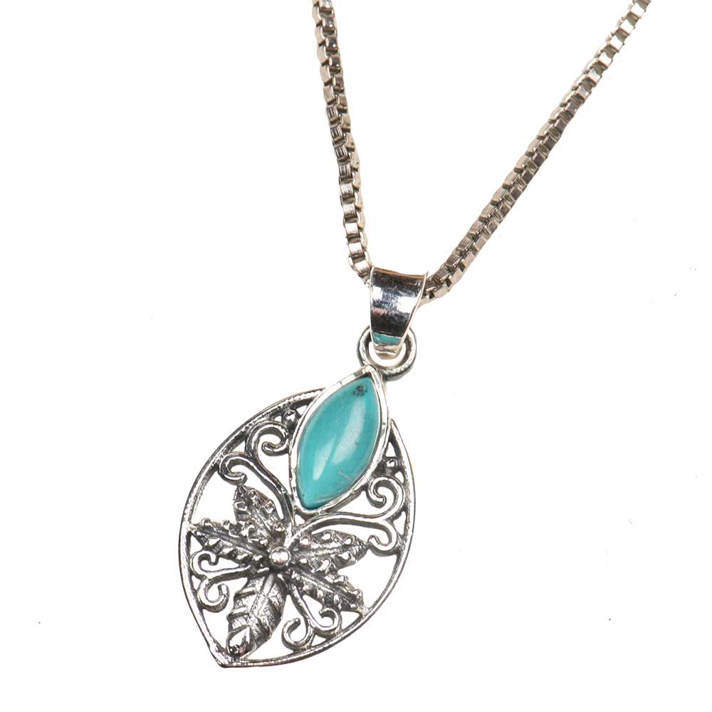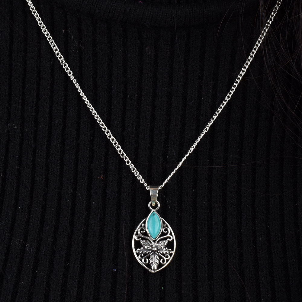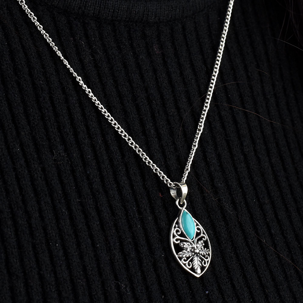 92.5 Sterling Silver Pendant Jewelry Jali Design Turquoise Stone perfect gift for weddings, engagements, birthdays, Halloween, Christmas and new year. Pair it with your casual and formal wear and suitable for men and women of all age and group.