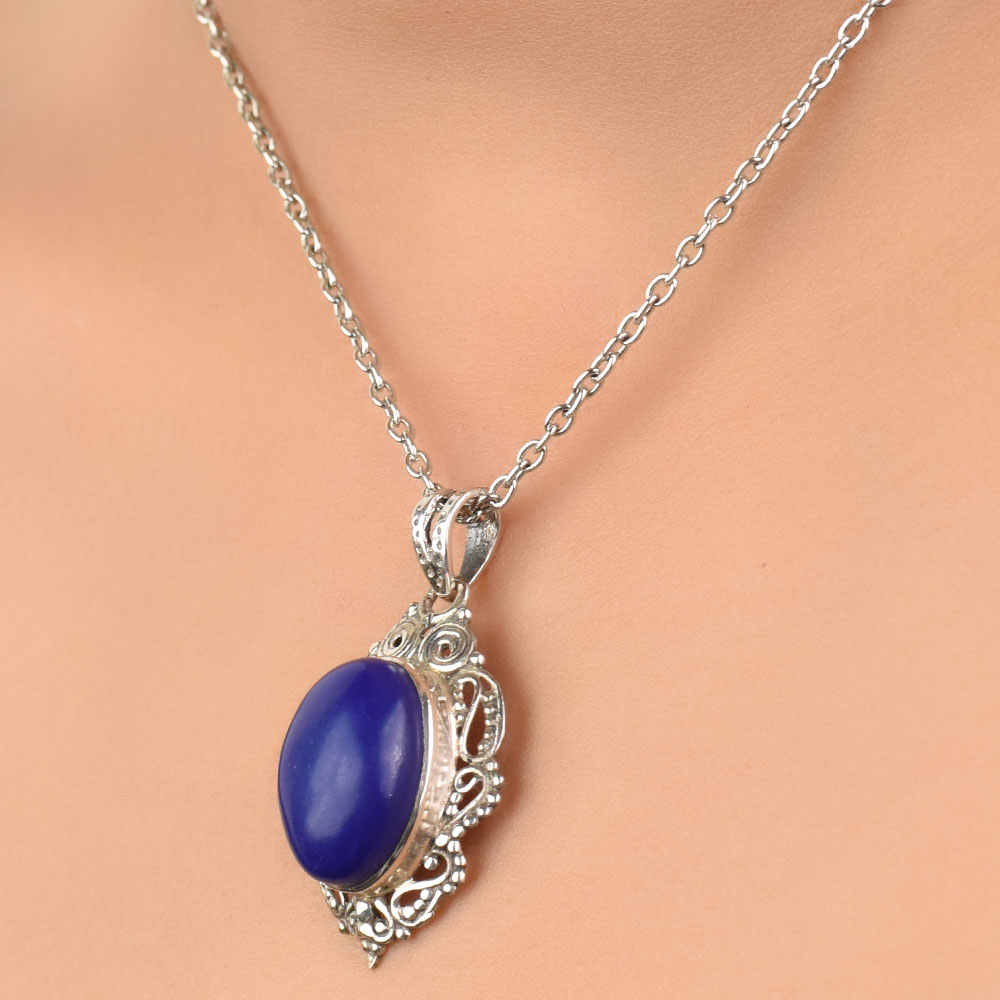 This elegant and traditional pendant comes in a dark midnight blue stone Tourmaline gemstone, which is often compared to looking at the night sky stars. A simple but stunning stone in a silver frame. Ideal for gifting and perfect for everyday or that special night out.