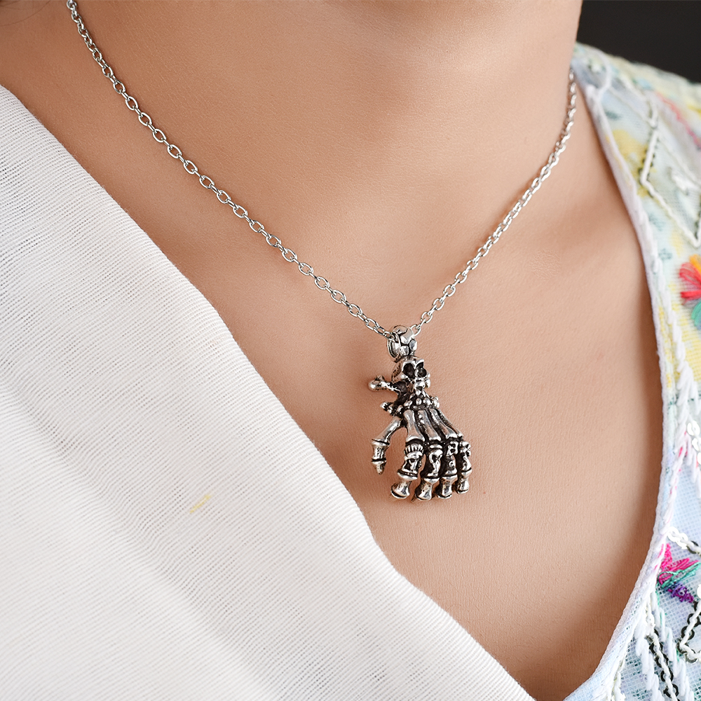 Unusual and creepy skeleton hand and head charm Pendant. This Scary handmade 92.5 Sterling silver pendant makes a great gift and a bit of fun for your brothers, sisters and friends.