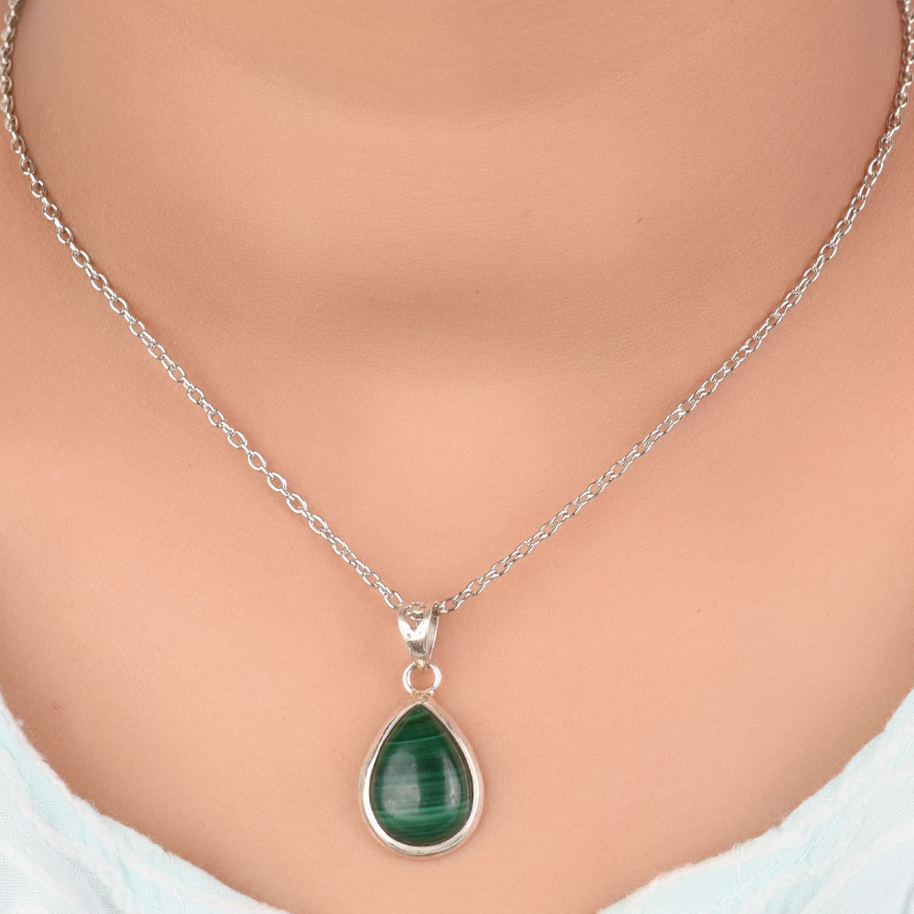 Dazzle everyone with our silver pendant chain for women made in 925 Sterling Silver and Semi-Precious Stone Green Malachite. Suitable for Any Season these pure silver pendant would make a great birthday gift, anniversary gift, mother's day gift, valentine's day gift, Christmas gift, wedding gift.
