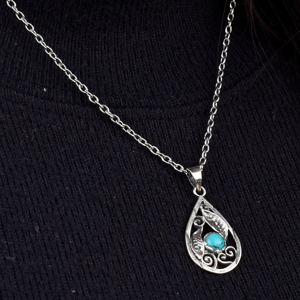 Finely crafted 92.5 sterling silver pendant jewelry with blue turquoise pendant is a lovely accessory when teamed with casual and formal wear, office wear, daily wear etc. perfect wedding, anniversary gift, Birthday gift , graduation ceremony, Naming ceremony , return gift and on many more functions.