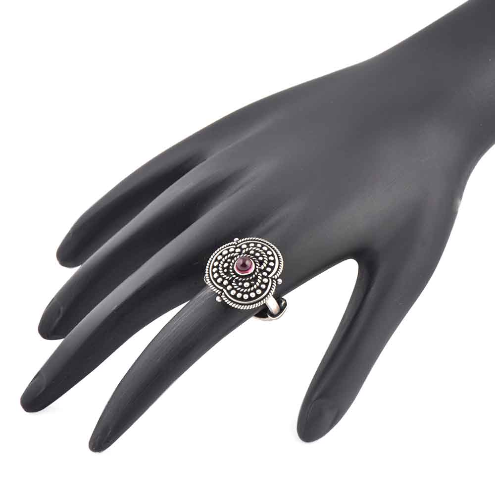 92.5 Sterling silver ring with a roped design embossed inside the petal of the flower design is adjustable and fits the finger of any female. It is the perfect gift for your girlfriend, fiance, wife , colleague some one who is very dear to you.