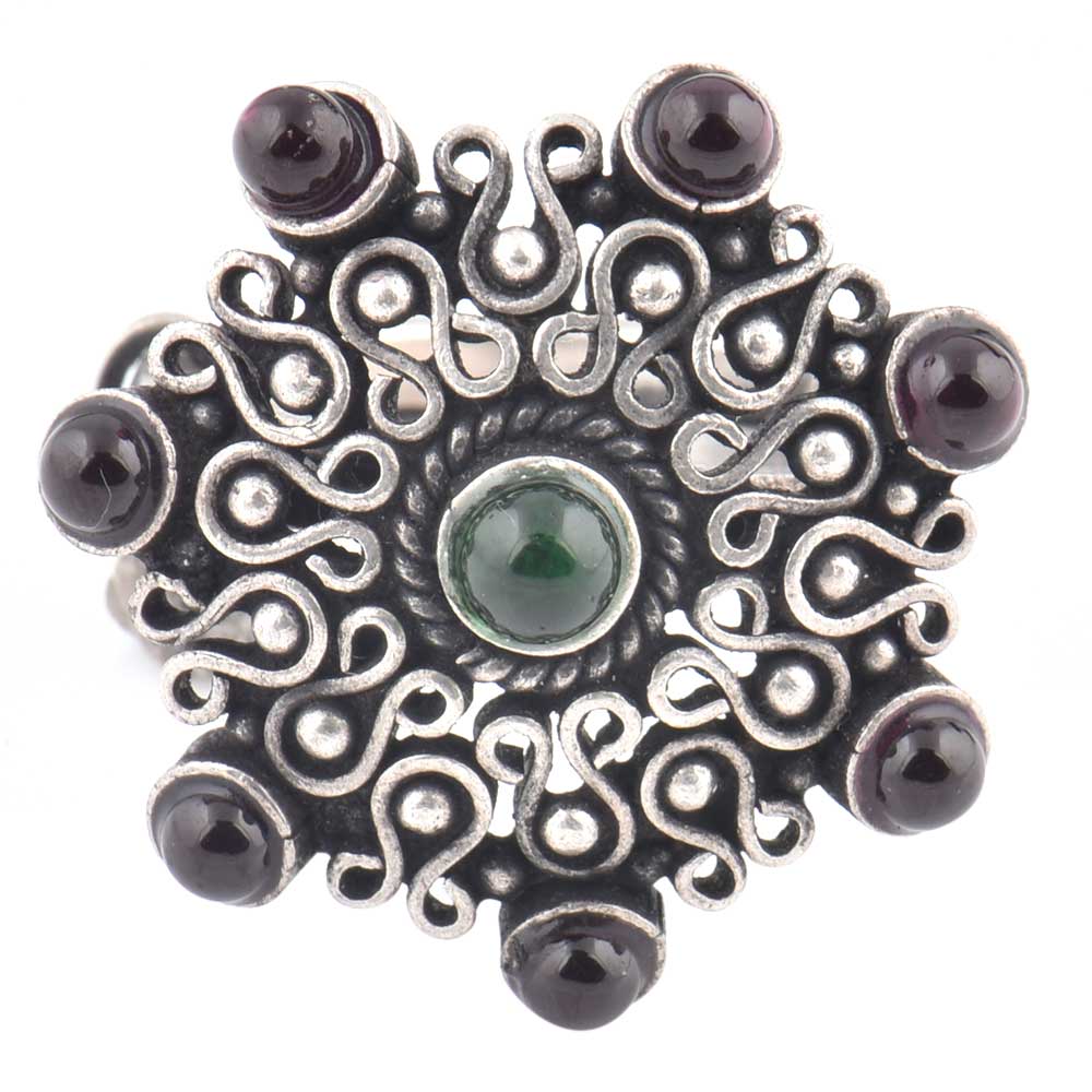 Amethyst Studded 92.5 Sterling Silver Ring with traditional motifs and design with green onyx is the ideal accessory for that perfect date , wedding , cocktail party , bridal shower, graduation ceremony for your sister, mother, wife ad special friend or date.