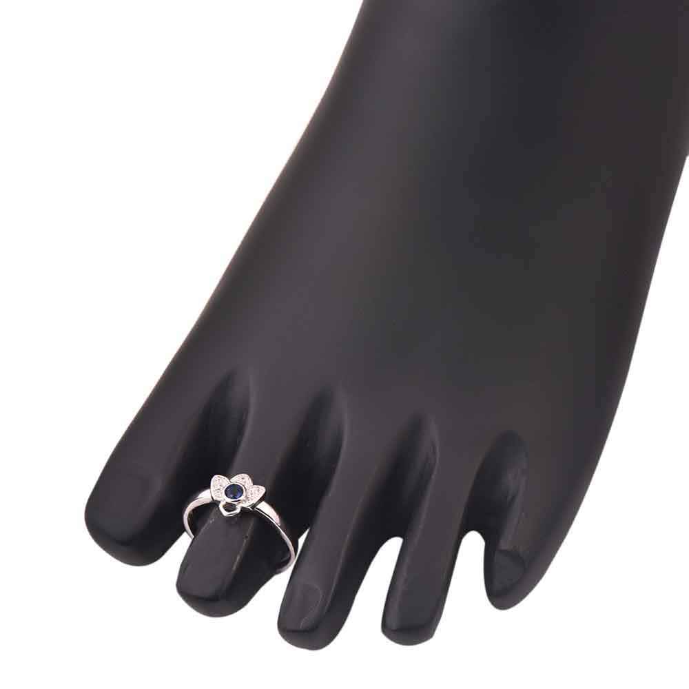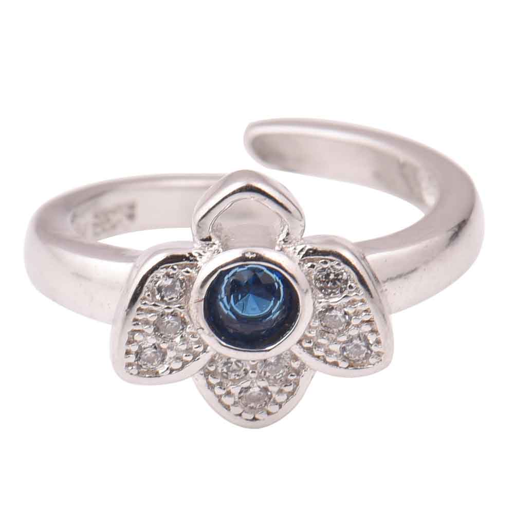 92.5 Sterling Silver toe ring with American diamonds and single tanzanite floral design add elegance and style to traditional clothing. Gift it to your near and dear ones on Diwali, Christmas , karva chauth. Engagement ceremony etc. Also worn by young girls and kids a s finger rings and matched with their traditional outfits.