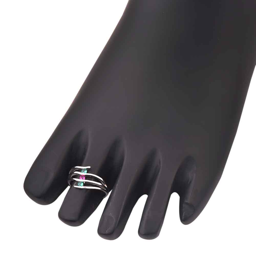 92.5 Sterling silver toe rings layered design studded with round green onyx and pink tourmaline gives pops of color to otherwise simple looking toe ring. Gift it to your near and dear ones on special functions and occasions.