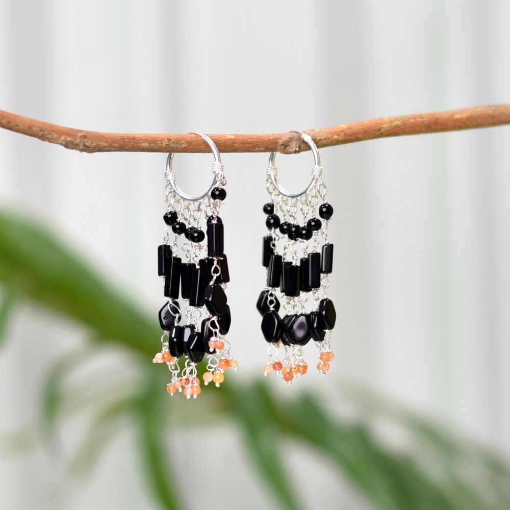 A distinctive and striking piece of jewellery, these 925 silver tribal drop/dangle earrings include natural black onyx gemstones. A kind of chalcedony known as onyx is prized for its rich, deep black hue and highly polished surface. The outcome is a beautiful and unique pair of earrings that have a tribal pattern coupled with 925 silver settings. Natural black onyx gemstones that have been cut and polished into an oval or teardrop form are the focal point of the earrings. After that, the jewels are mounted in 925 silver, a premium metal that is strong and long-lasting. The earrings have a dramatic and distinctive appearance thanks to the numerous patterns and forms that make up the tribal design. Natural black onyx gemstone drop/dangle tribal earrings made of 925 silver go well with both casual and dressy clothes. They are adaptable and can give any appearance a little edge and flair. It's critical to check for premium components and workmanship when purchasing 925 silver tribal drop/dangle earrings with real black onyx gemstones. The metal findings should be made of a sturdy substance that won't tarnish or deteriorate over time, and the gemstones should be firmly set in the silver. Ensure that the jeweller you choose specialises in fine, handcrafted jewellery and is trustworthy. 92,5 silver natural black onyx gemstone drop/dangle tribal earrings are a distinctive and fashionable piece of jewellery that can add flair to any ensemble. They make a wonderful present for a loved one or special event and are guaranteed to be appreciated additions to any jewellery collection.