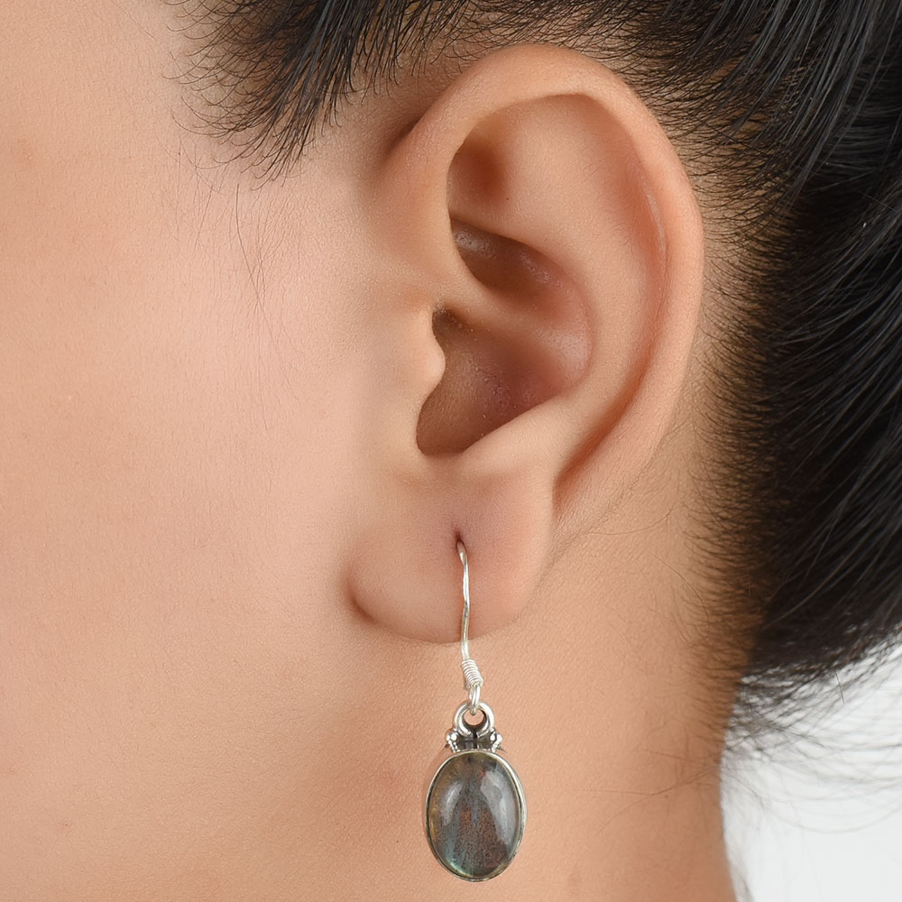 Simple and elegant 92.5 Sterling Silver Earrings With Single cabochon bezel set big oval moonstone drop hangings is the best gift for your sister, mother, wife and best friend . Ideal office wear and casual wear fashion accessory.