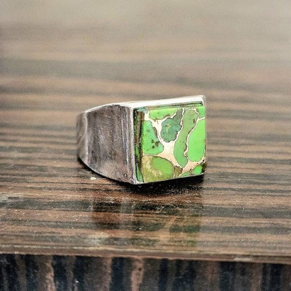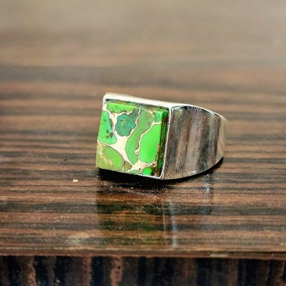 Celebrate the allure of our 925 silver green turquoise ring healing gemstone gift for men, where natural green copper turquoise, 925 sterling silver and bold come together to create a unique style. This ring is for gift givers, each piece reflecting individuality and care. Packed & quality-checked by Indianshelf.