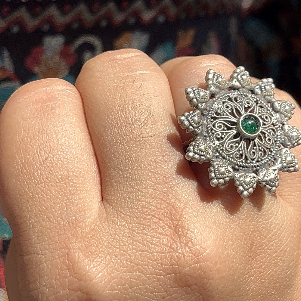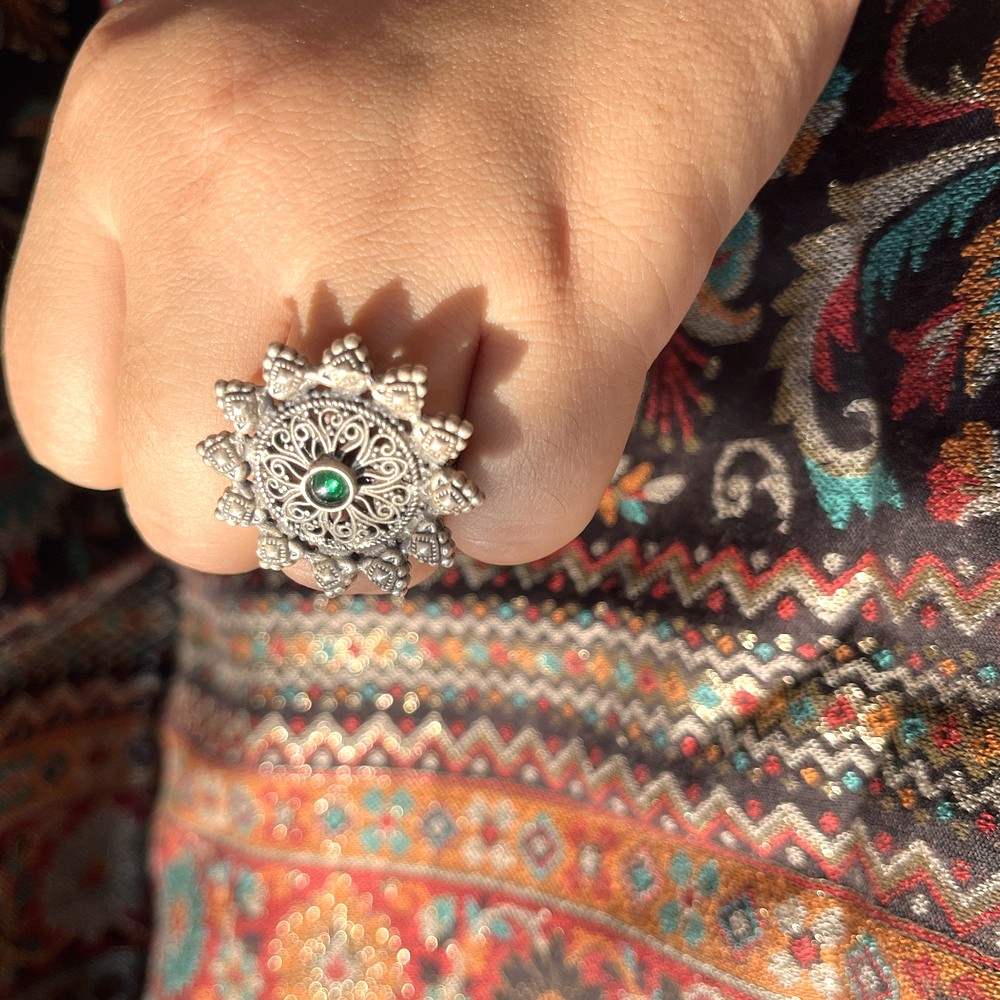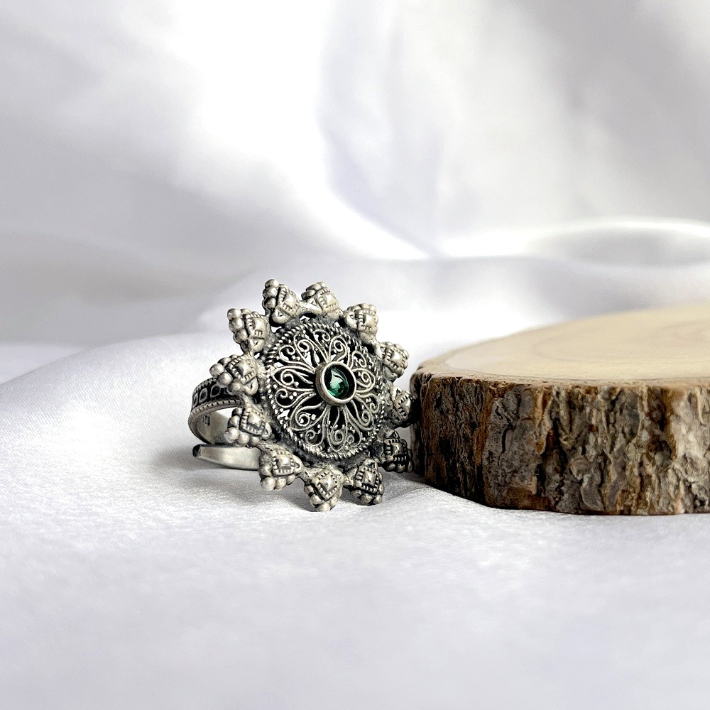 Delight in the Emerald Cocktail motif, hand shaped from hallmarked 925 silver and adorned with sparkling stones to evoke timeless charm. Packed & quality-checked by Indianshelf. Emerald Cocktail Icon & Brilliant Craftmanship for Emerald Cocktail Delight in the Emerald Cocktail motif, hand shaped from hallmarked 925 silver and adorned with sparkling stones to evoke timeless charm. Each piece is handcrafted from hallmarked 925 sterling silver featuring Emerald Cocktail and emerald stone for brilliant shine Entirely handmade no machines used Finished with gold plated finish for lasting lustre and hypoallergenic comfort Materials & Heritage Assurance for Emerald Cocktail Origin: India. Safely packed and quality-checked by Indianshelf Entirely handmade no machines used Hallmarked 925 sterling silver with gold plated finish ensures shine and durability Styling Ideas & Gifting Inspiration for Emerald Cocktail daily office wear or evening outings to elevate your look ideal for birthdays anniversaries or Valentines Day great for upscale retail displays or curated boutique collections useful for event planners cultural ceremonies or jewelry collectors Care Instructions & Maintenance Tips for Emerald Cocktail Keep your piece looking new by wiping it after use and storing it in a dry cool place. Avoid abrasive cleaners and prolonged exposure to sunlight or heat. Frequently Asked Questions for Emerald Cocktail Is the emerald cocktail ring size adjustable? Yes the flexible band allows you to gently adjust it for a comfortable fit. Will the emerald cocktail finish tarnish over time? No the protective coating keeps it shiny and resists tarnish when cared for properly. Can I stack the emerald cocktail ring with others? Certainly its versatile design makes it perfect for stacking or wearing solo. Are the stones on the emerald cocktail ring securely set? Yes the stones are hand set to stay in place while adding brilliance. Supporting Indian Artisans & Craft for Emerald Cocktail Every piece reflects heritage artistry and careful attention to detail. All our products are handmade and never machine made ensuring individuality.
