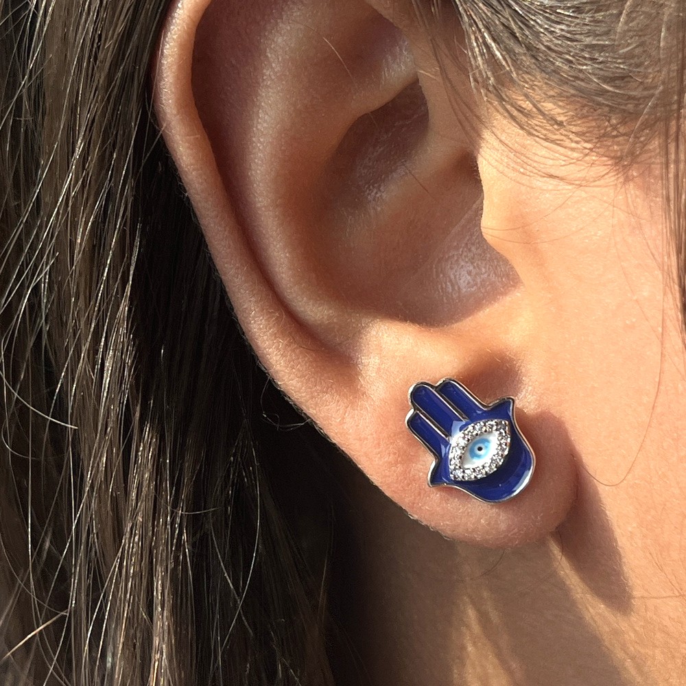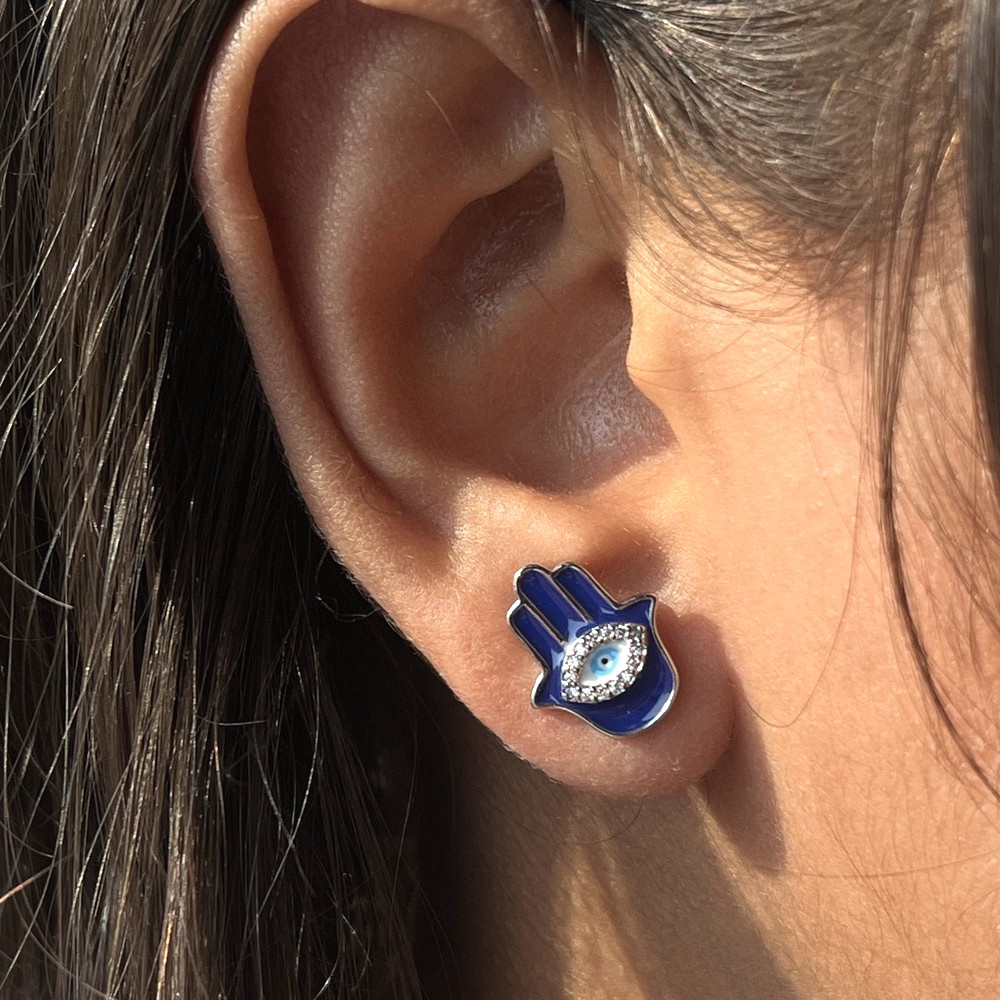 Embrace Hamsa flair with this piece, lovingly crafted from pure 925 silver and shimmering zirconia for a touch of magic. Packed & quality-checked by Indianshelf. Hamsa Grace & Handcrafted Beauty for Hamsa Embrace Hamsa flair with this piece, lovingly crafted from pure 925 silver and shimmering zirconia for a touch of magic. Each piece is handcrafted from hallmarked 925 sterling silver featuring Hamsa and stones for brilliant shine Entirely handmade no machines used Finished with rhodium coating for lasting lustre and hypoallergenic comfort Specifications & Craft Details for Hamsa Origin: India. Safely packed and quality-checked by Indianshelf Entirely handmade no machines used Hallmarked 925 sterling silver with rhodium coating ensures shine and durability Ways to Wear & Share for Hamsa daily errands or formal dinners to add subtle sparkle perfect for gifting on festivals birthdays or Mothers Day suited for boutique showcases or retail gift counters wonderful for weddings parties or traditional events Jewelry Care & Keeping It Shiny for Hamsa Wipe with a soft dry cloth after each wear to remove oils and moisture. Store in an airtight box away from chemicals and humidity to preserve its shine. Customer Queries Answered for Hamsa Will the hamsa earrings irritate sensitive ears? No made with hypoallergenic 925 silver and a protective finish for comfort. Can I wear the hamsa earrings every day? Absolutely they are lightweight and durable for everyday use. Do the hamsa earrings come as a pair? Yes you receive one pair neatly packed for gifting or personal use. Are the hamsa stones secure? Yes each stone is carefully hand set for lasting sparkle and worry free wear. Celebrating Traditional Craftsmanship for Hamsa Every piece reflects heritage artistry and careful attention to detail. All our products are handmade and never machine made ensuring individuality.