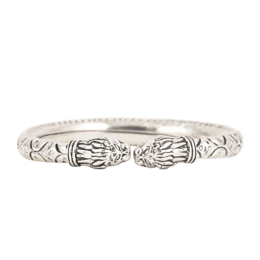 Made out of 925 Sterling Silver this light weight flexible bangle with tiger head looks very stylish and can be used for daily wear. This Handmade silver bangle can be matched with an assortment of apparels and can be worn to parties, weddings and other auspicious occasions.