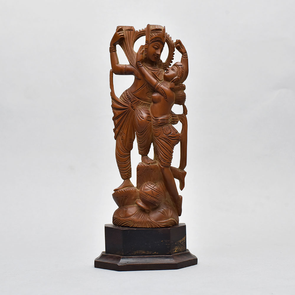 The Sandalwood Couple Dancing Figure is a work of art that will transport you to the dance floor. Witness the passion and artistry of the dancers, their bodies moving as one in a mesmerizing display. This captivating statue is more than just a decoration - it's a gateway to a world of elegance, romance, and timeless beauty. Whether displayed in your living room, bedroom, or office, this sandalwood figure will elevate the ambiance and infuse your space with a sense of sophistication. Imagine coming home to this breathtaking piece, a constant reminder to slow down, embrace the moment, and find joy in the simple pleasures of life. The Sandalwood Couple Dancing Figure is a must-have for any lover of art, dance, or simply the finer things in life. Bring the timeless elegance of the dance to your home with the Sandalwood Couple Dancing Figure. This exquisite statue captures the fluid movements and intimate connection of two graceful dancers, crafted from the warm, natural tones of hand-carved sandalwood.