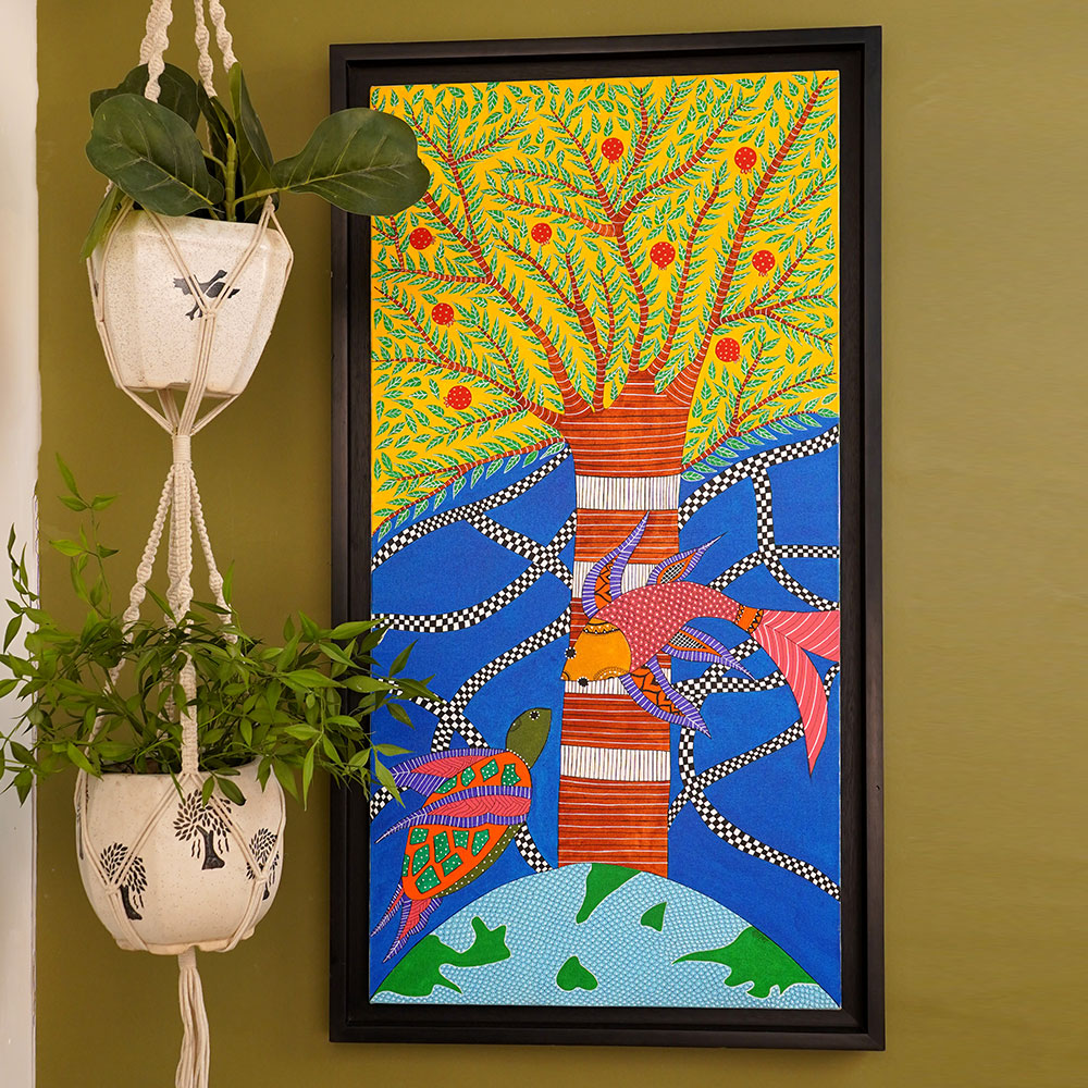 Prepare to be captivated by the breathtaking beauty of our Acrylic and Archival Ink on Canvas painting. This masterpiece is a true testament to the power of artistic expression, blending vibrant colors, intricate textures, and timeless craftsmanship. This painting is more than just a work of art - it's a celebration of the human spirit. The rich, mesmerizing colors and patterns draw you in, inviting you to lose yourself in a world of creative expression. Whether you're an art enthusiast or simply seeking to elevate your living space, this captivating piece will ignite your senses and leave a lasting impression. Elevate your home or office with the stunning beauty of this Acrylic and Archival Ink on Canvas painting. Designed to inspire and captivate, this work of art will become the focal point of any room, sparking conversations and igniting the imagination of all who behold it.