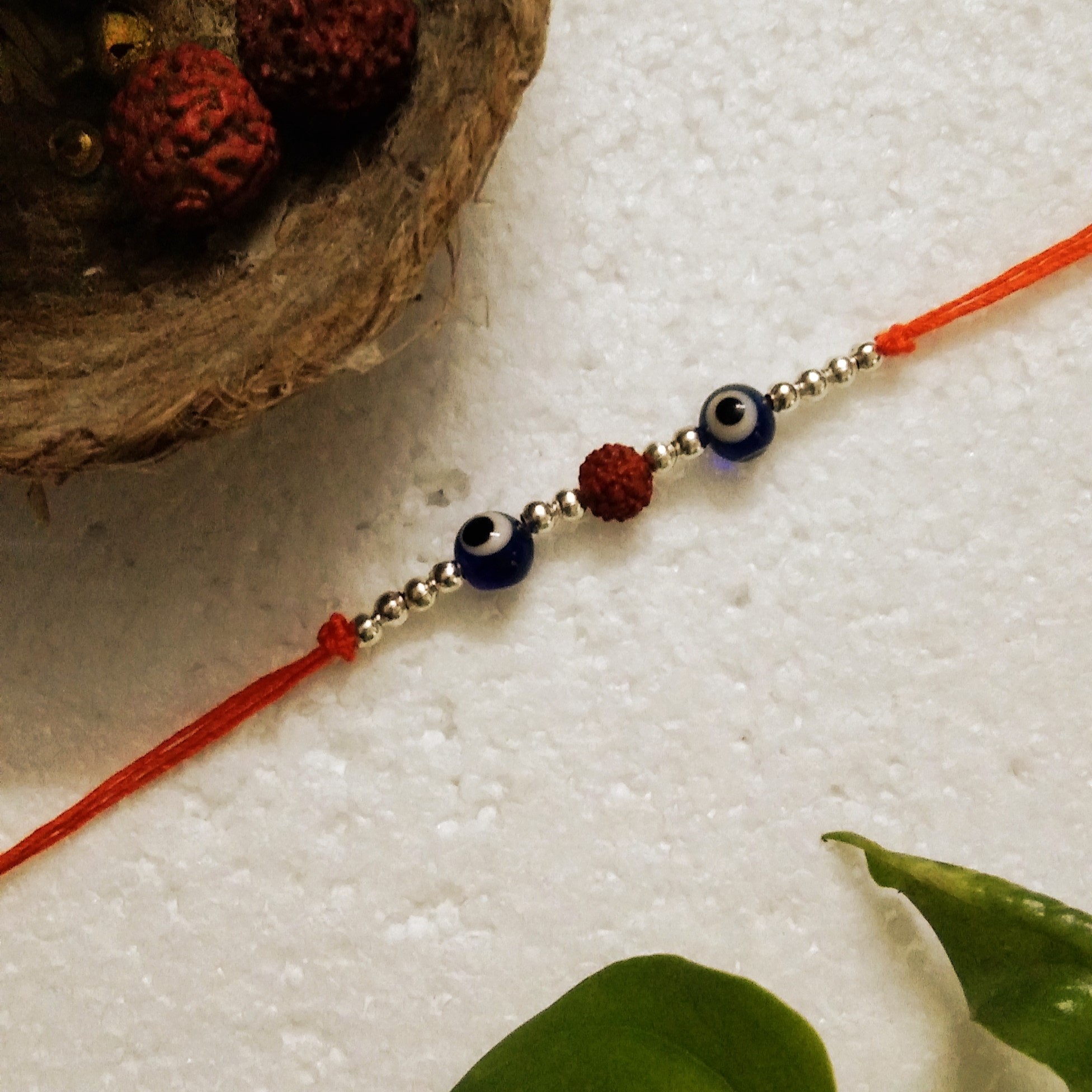 This rakhi stands out with its artistic use of glass/acrylic beads, blending vibrant tradition with contemporary flair. Thoughtfully handcrafted, it's a memorable choice for this year's Raksha Bandhan.
